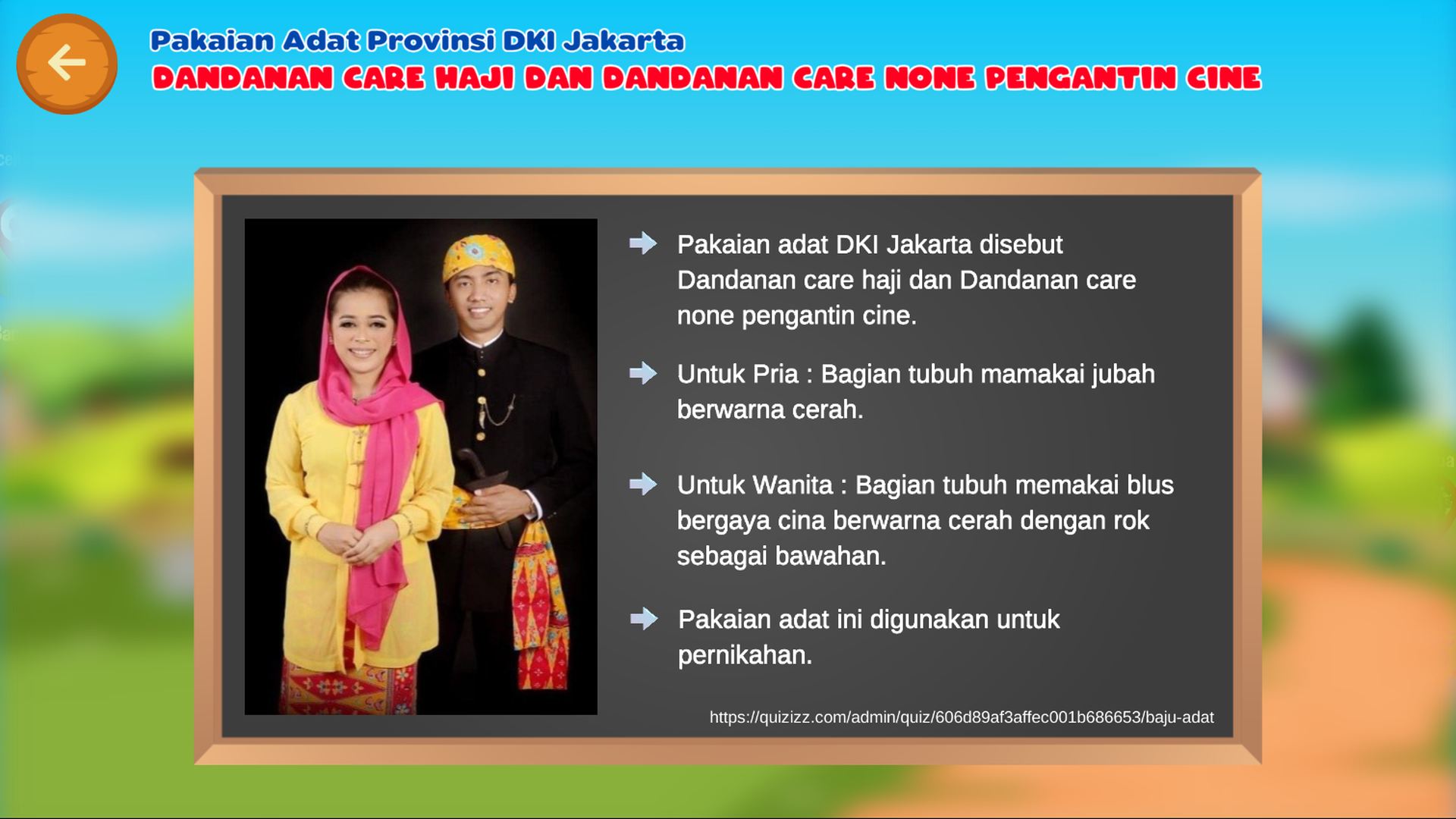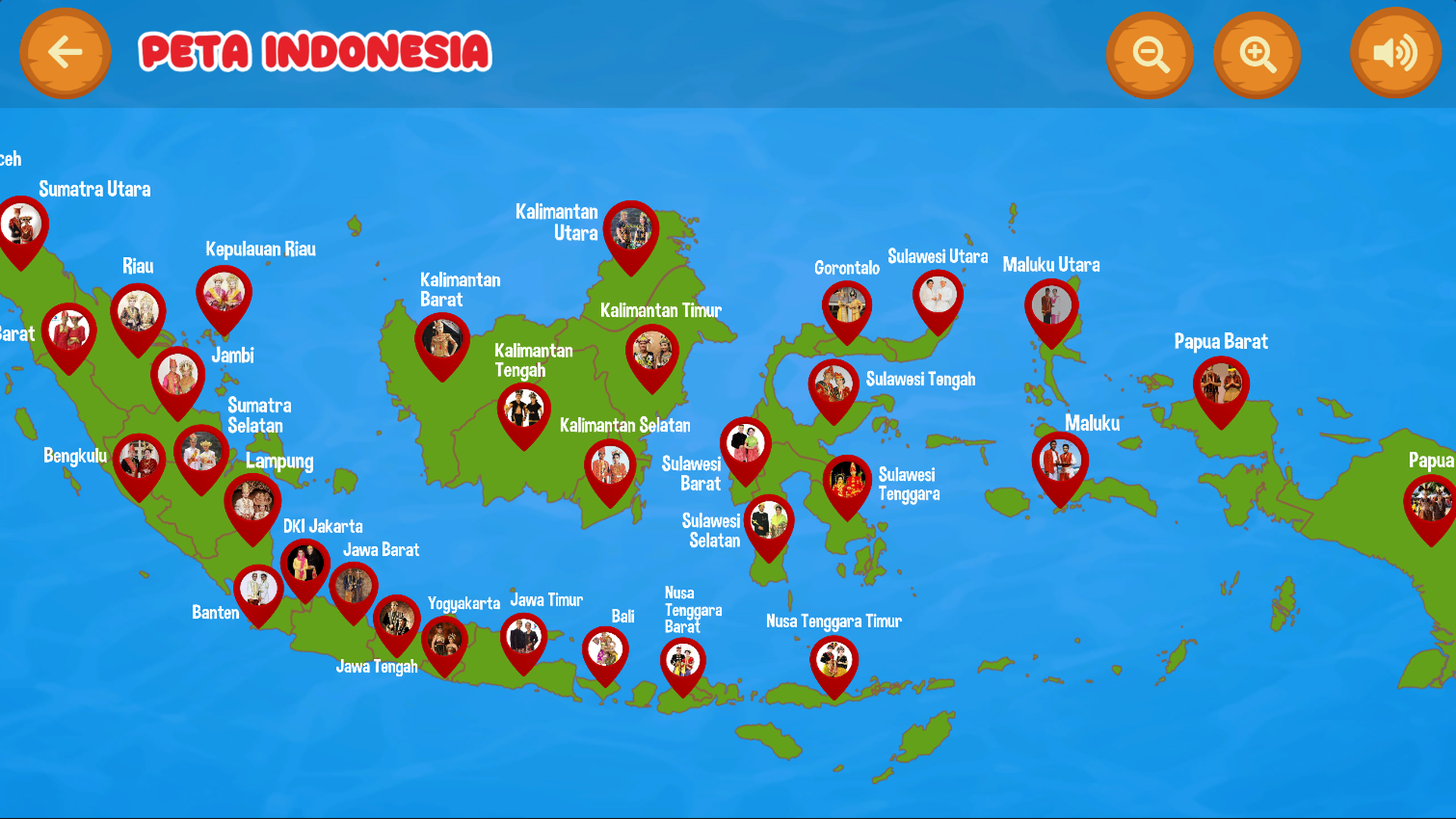 Kebudayaan - Pakaian Adat Indonesia | Aplikasi belajar mengenal berbagai macam pakaian adat yang ada di indonesia, dalam aplikasi ini terdapat lebih dari 30 macam pakaian adat indonesia yang tersebar di provinsi-provinsi di indonesia. Disajikan dengan bantuan gambar peta indonesia sehingga lebih menarik dan mudah dipahami.