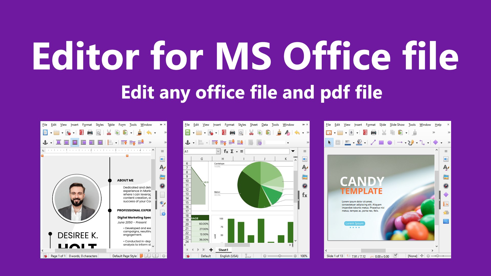 Create and Edit Word(.docx, .doc, .rtf) DocumentsCreate and Edit Excel(.xlsx, .xls, .csv) DocumentsCreate and Edit PowerPoint(.pptx, .ppt) DocumentsView eBooks Files(.epub, .mobi, .fb2, .azw and so on)Edit PDF FilesView popular Image Files(.heic, .heif, .raw, .webp)