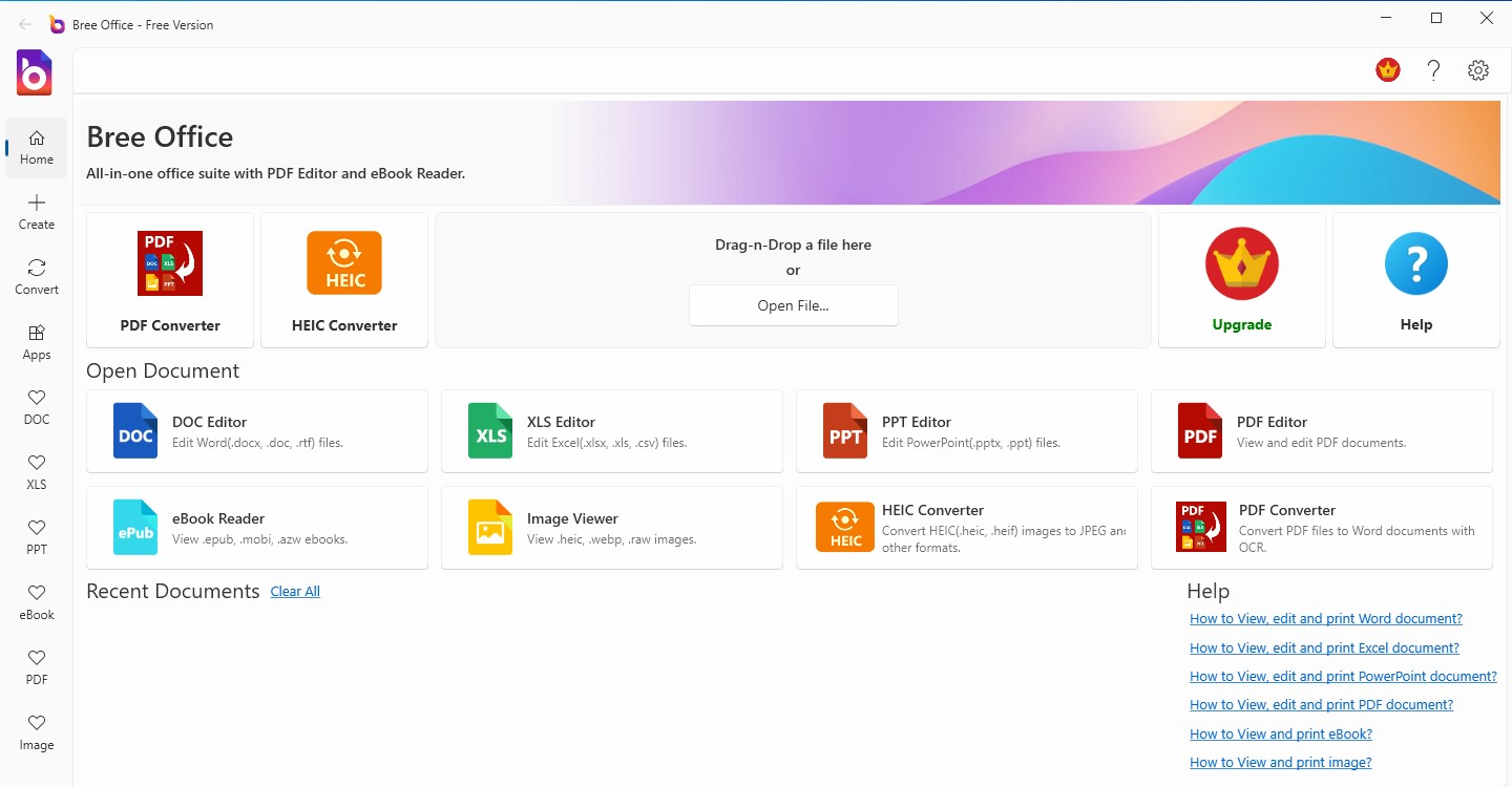 Bree Office is an all-in-one office suite to view and edit multiple types of files, including PDF, Word, Excel, PowerPoint, and eBooks. It also provides features such as Template Library, and Converting.
