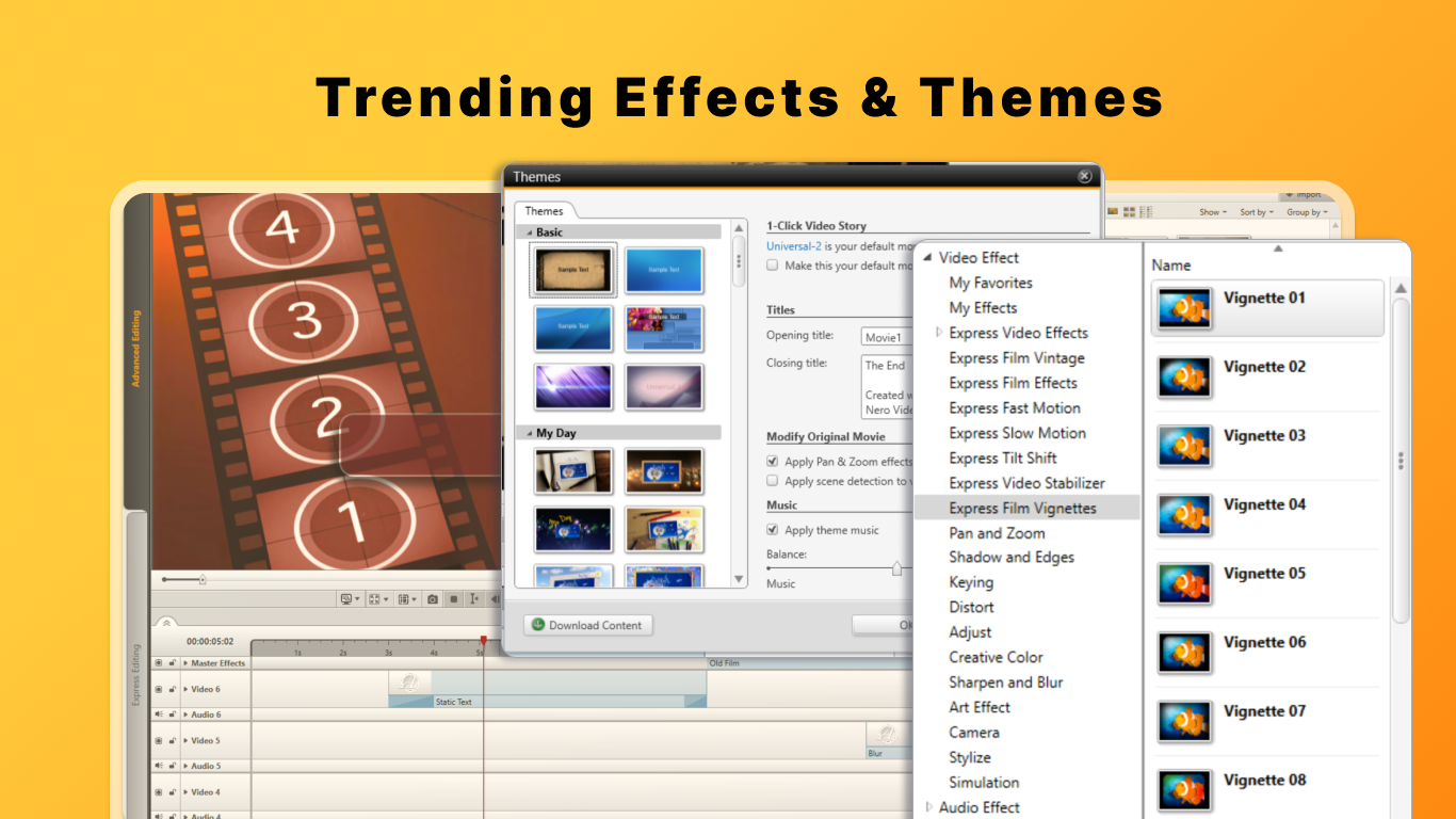 Create professional videos quickly and easily: Add a wholly personal touch to your videos with over 1000 movie templates and other effects. With the diverse range of new film templates, including effect drop zone, you can automatically create your own very personal films on themes such as family, parties, children, travel, action and more. Black bars on widescreen TV are now a thing of the past. Even upright videos and photos from your phone can be easily imported as vertical video, edited and perfectly staged thanks to Vertical Video Templates.