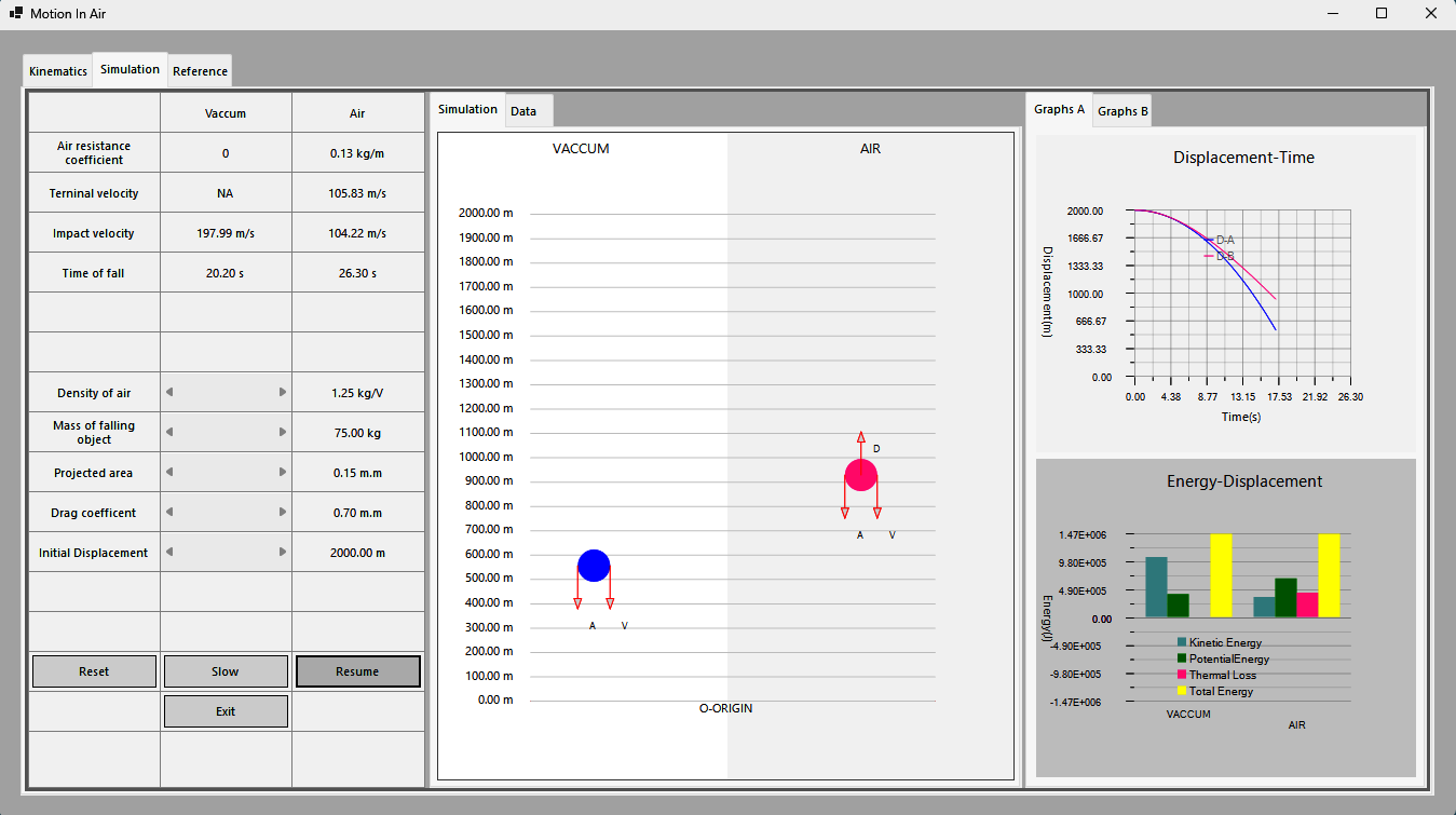 This app is a simulation study by changing the above factors involved and comparing them with free fall with graphics.