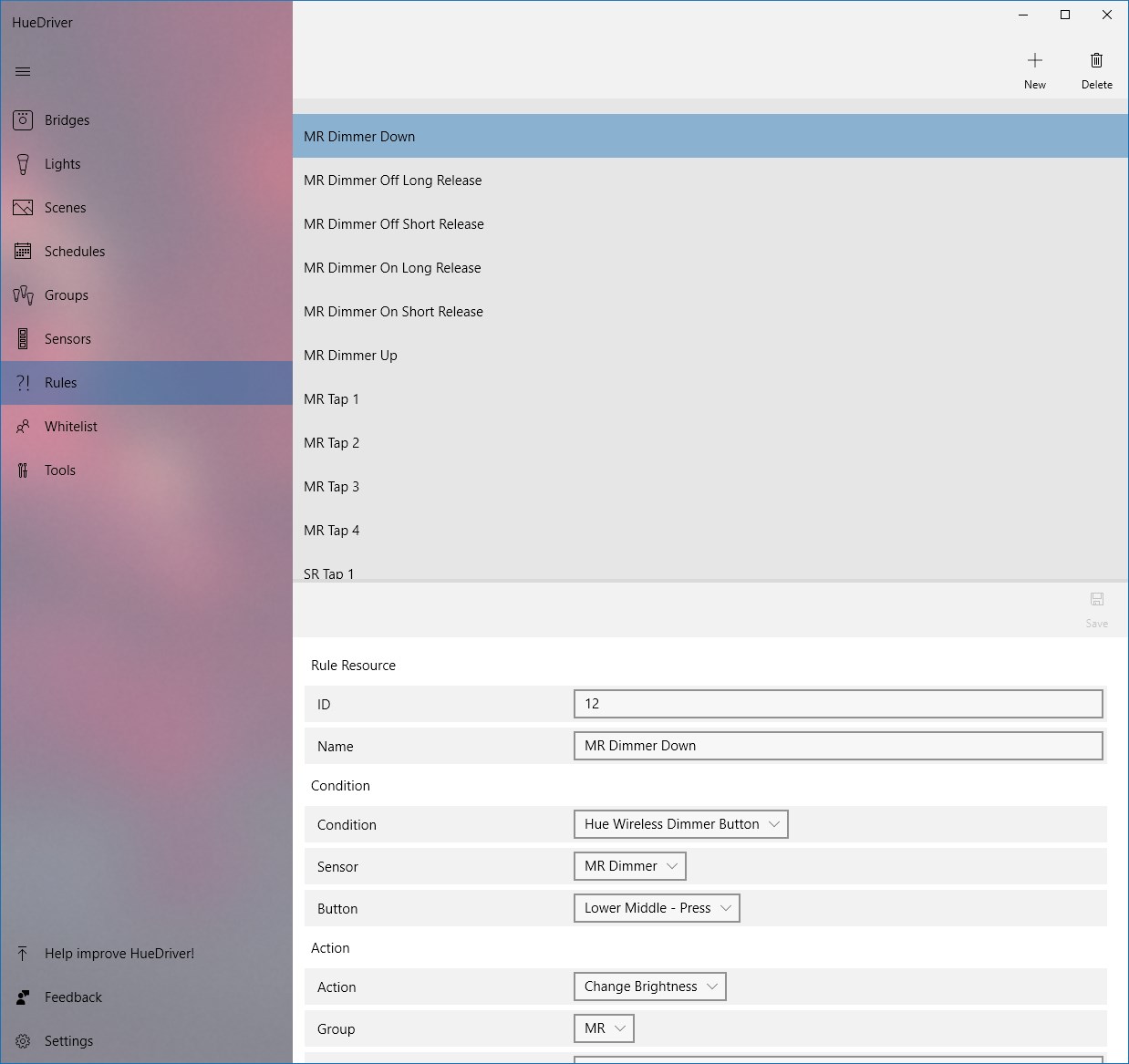 HueDriver is used to view and modify the settings of your Philips Hue lighting system in detail.