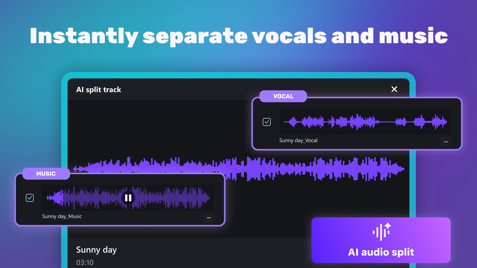 Use the power of artificial intelligence to easily separate vocals and music from any song or audio file.
