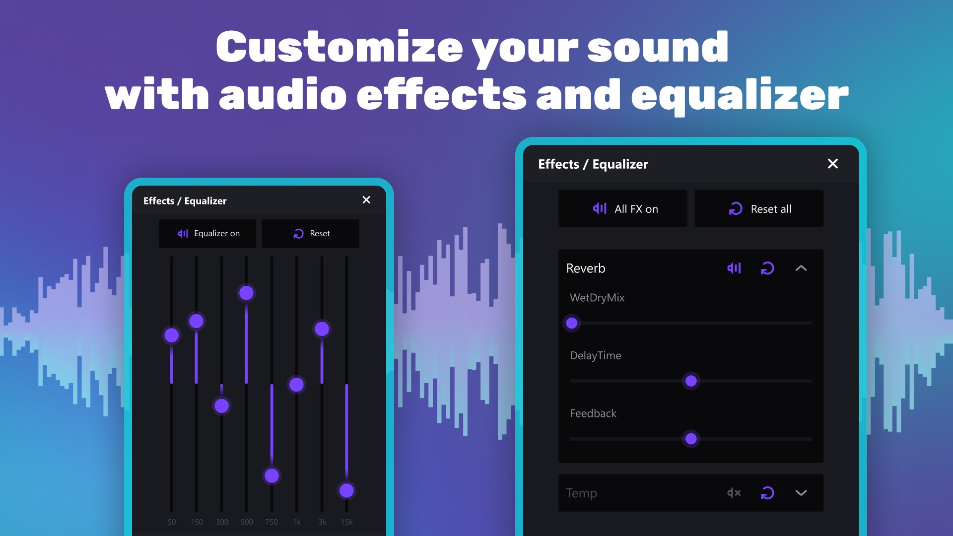 Choose from a wide range of audio effects such as pitch shift, reverb and delay to enhance and personalize your sound.