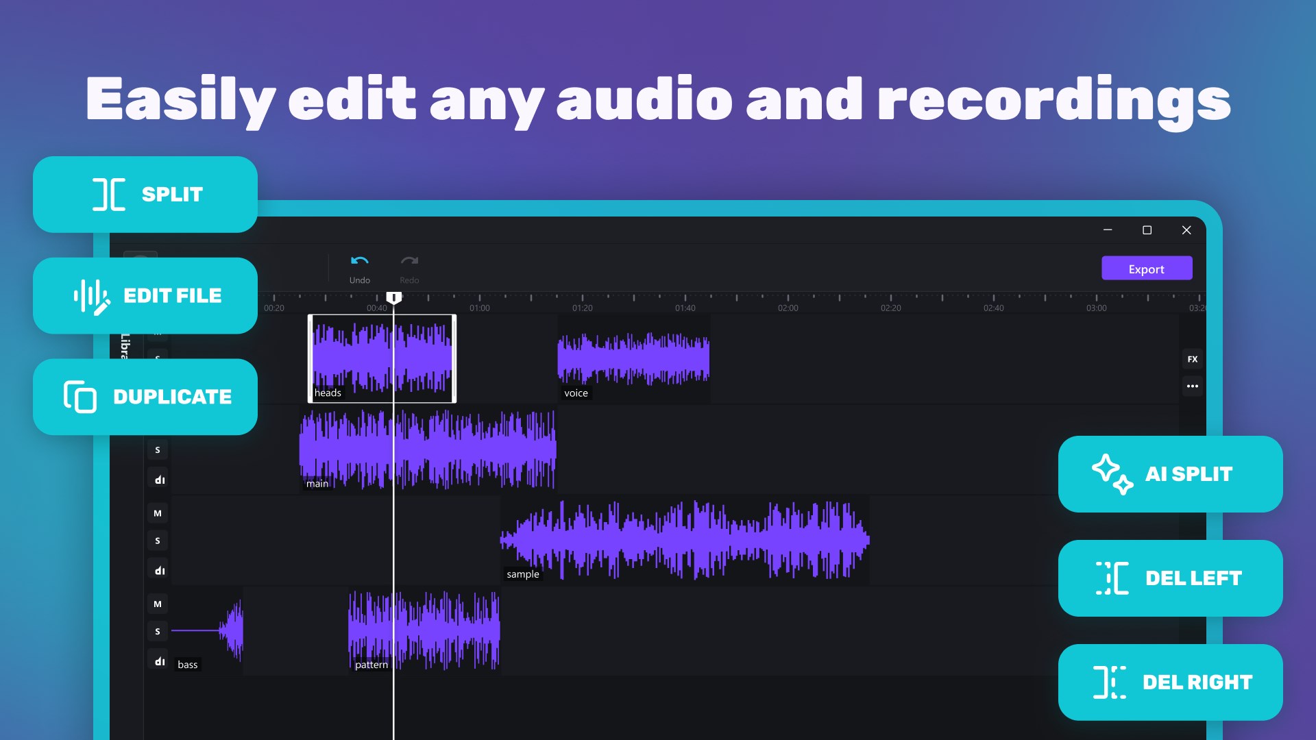 Easily upload any audio file and save your projects in versatile formats like .wav and .m4a.
