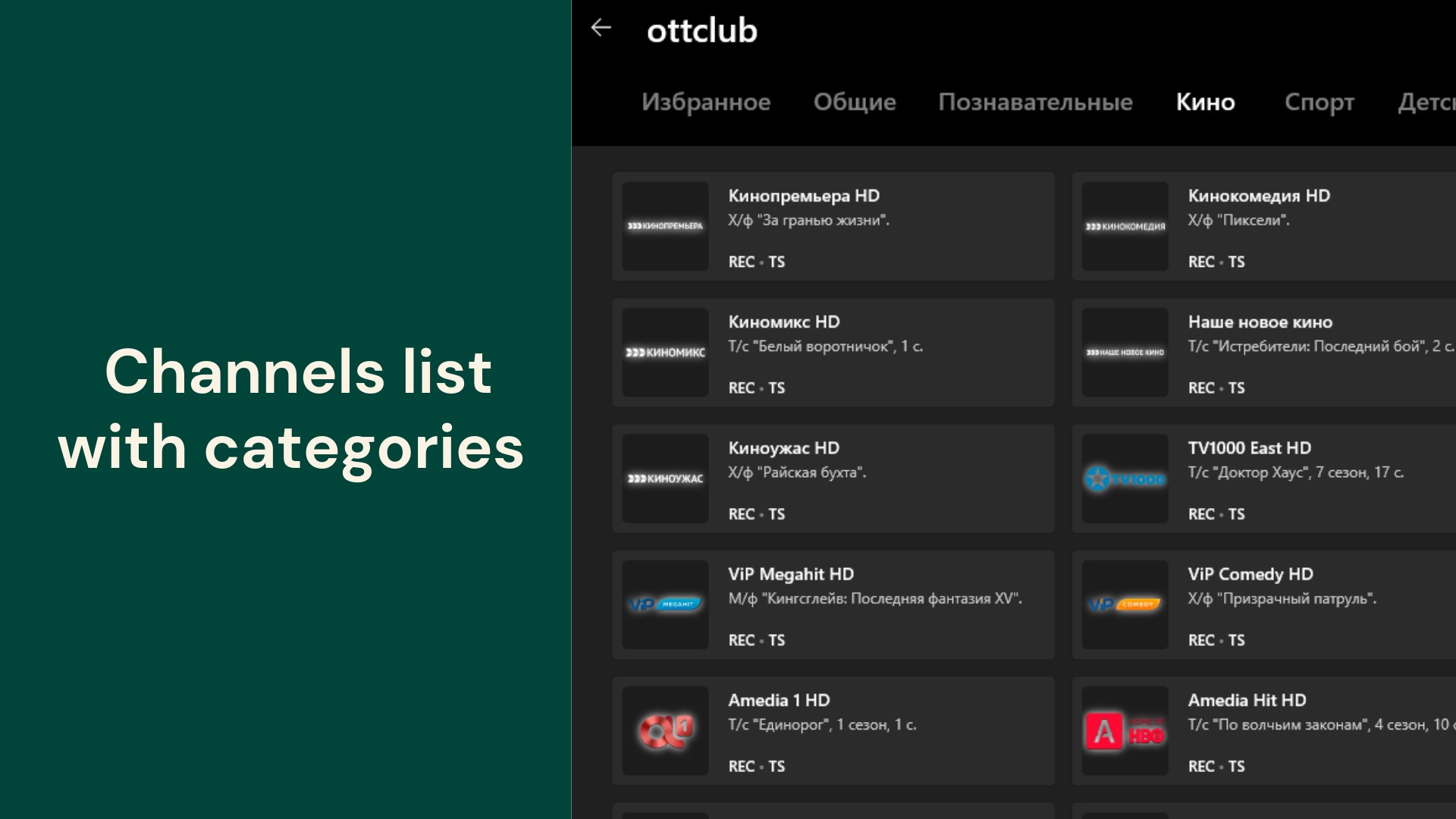 M3U PlaylistSearch in playlistNative support OttclubNative support TVCLUB
