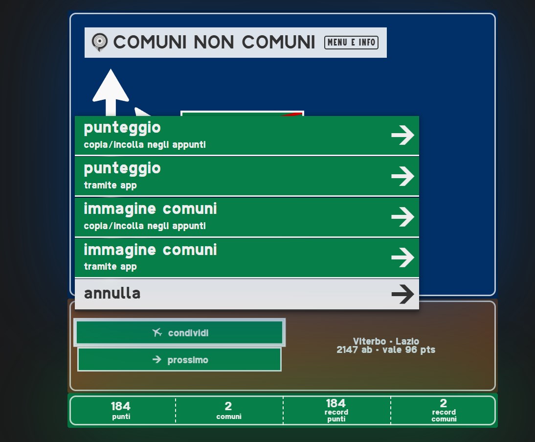 Comuni Non Comuni è un gioco semplice, veloce, immediato e coinvolgente. Vi verranno mostrati due nomi: uno è un vero comune italiano, l'altro è un nome generato con un algoritmo creato ad hoc.