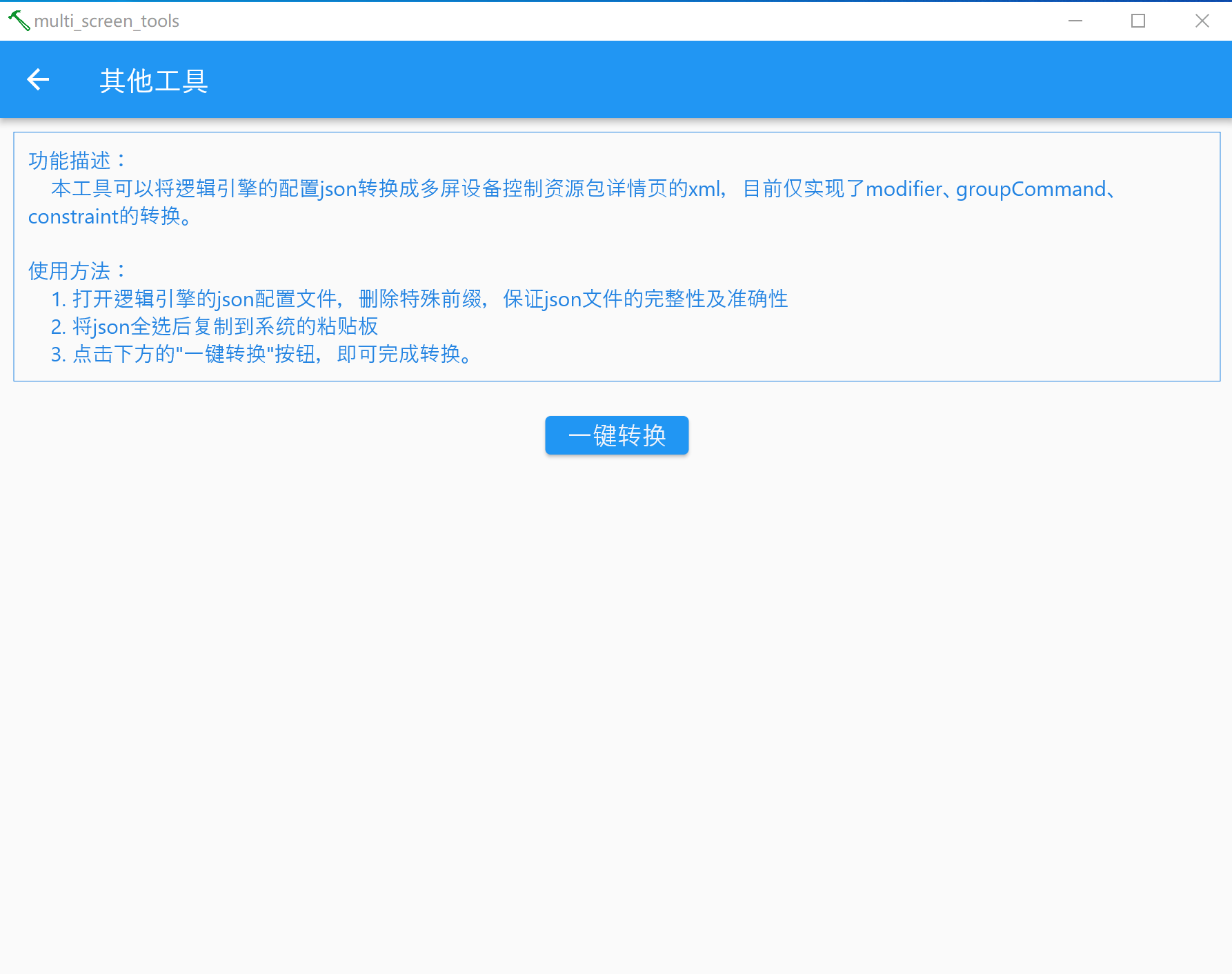 2.支持将逻辑引擎的json转化为多屏资源包的xml(modifier、groupCommand、constraint);