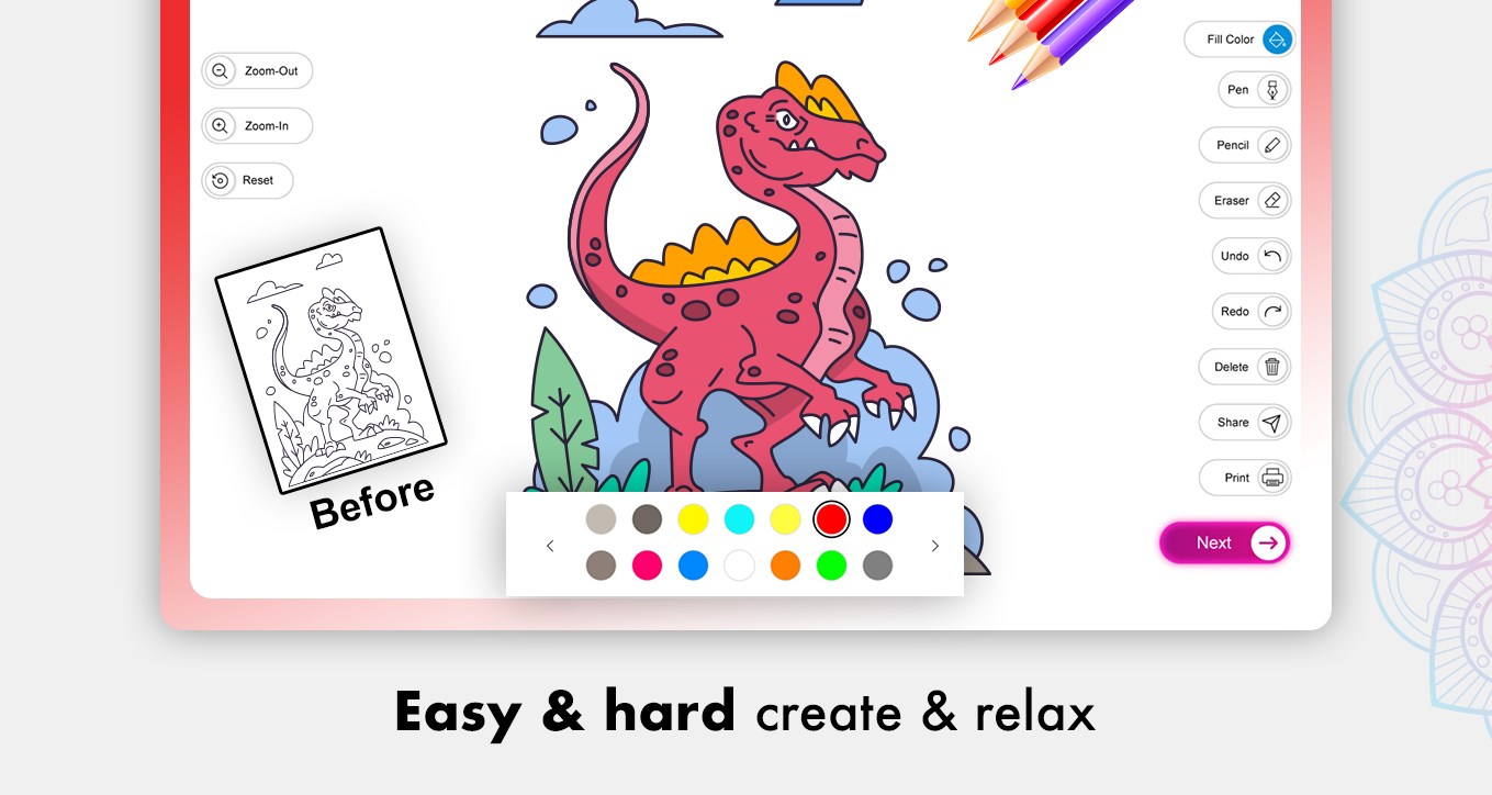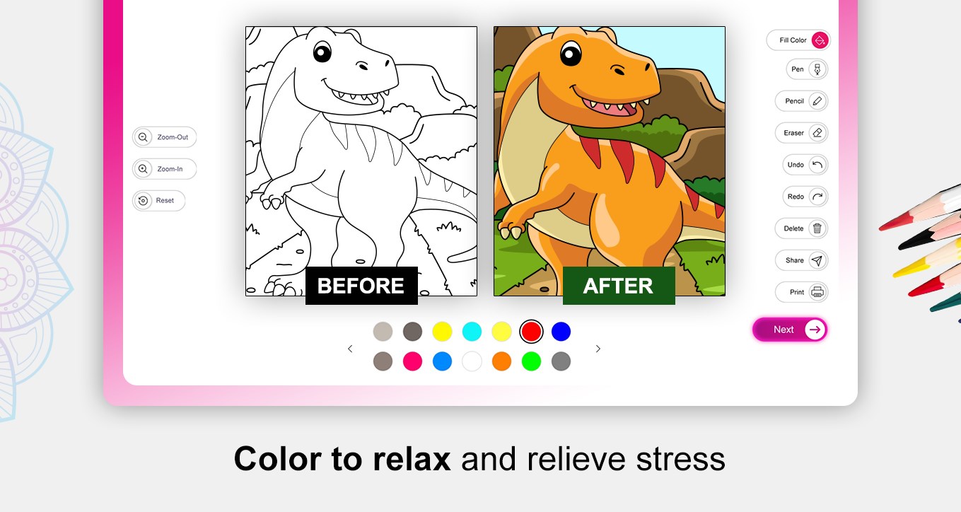 What is as colorful as flowers? Dinosaurs!! Get your kids to fill amazing colors to beautiful Dinosaurs crafted by us.