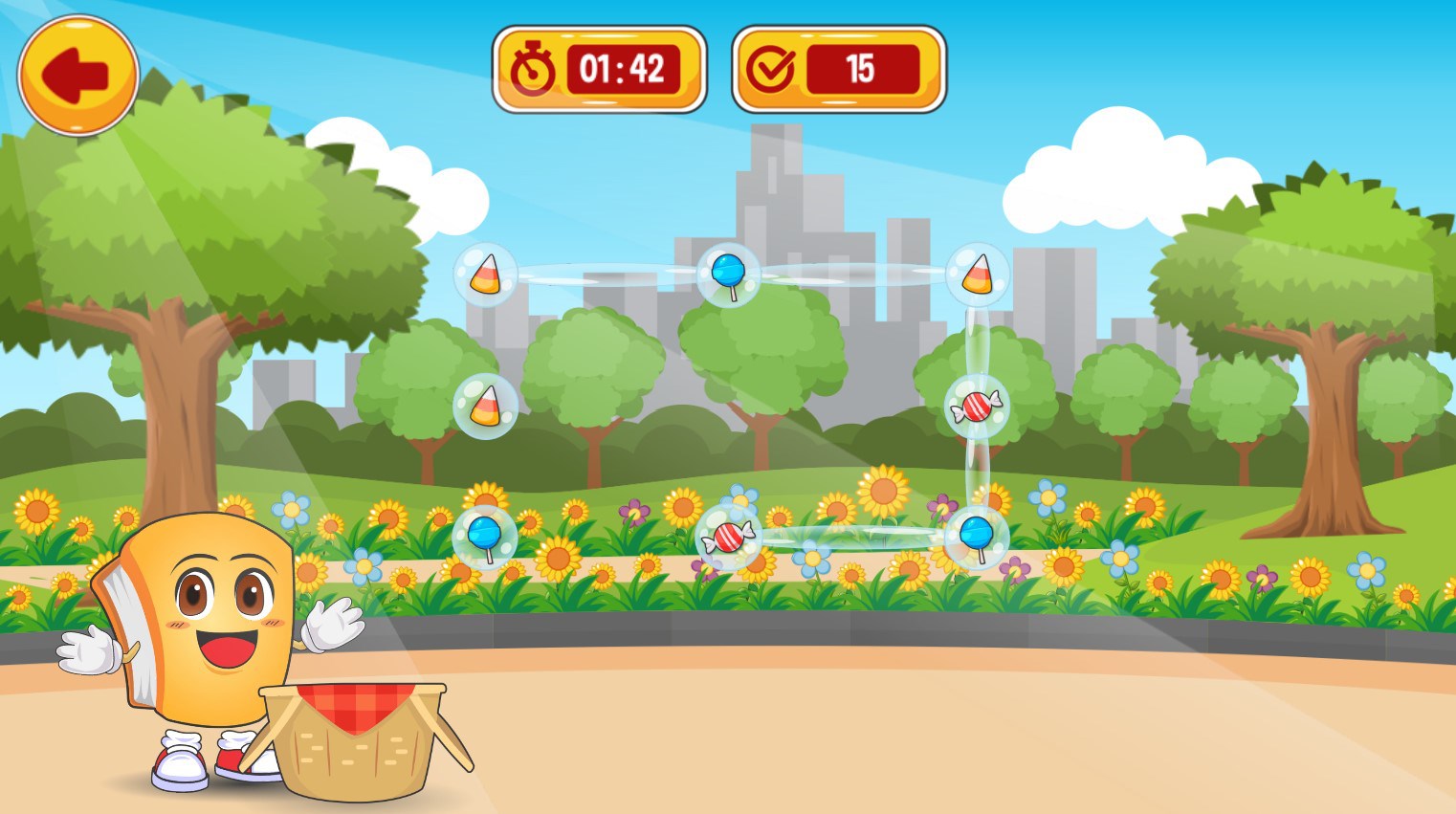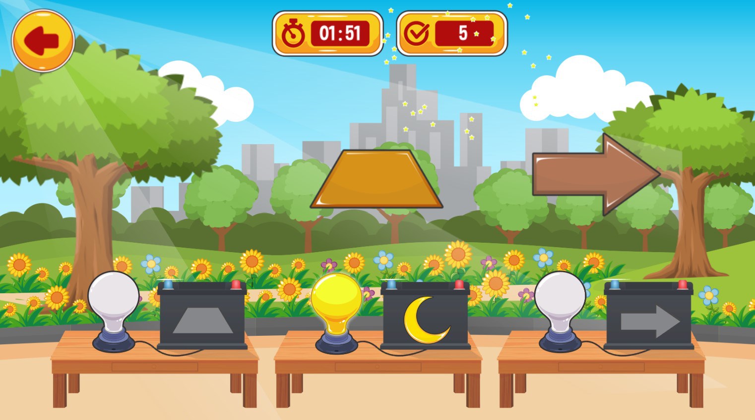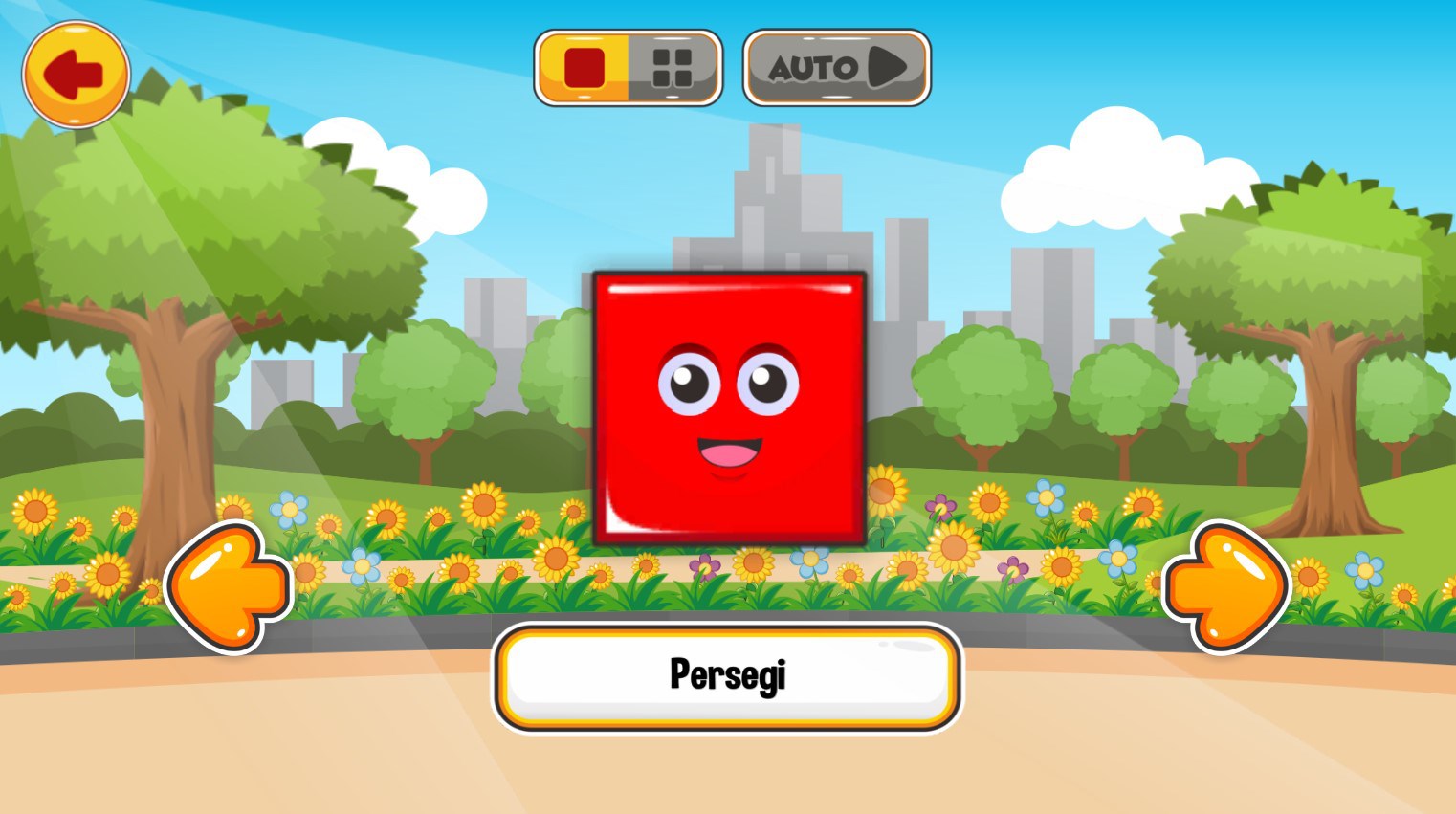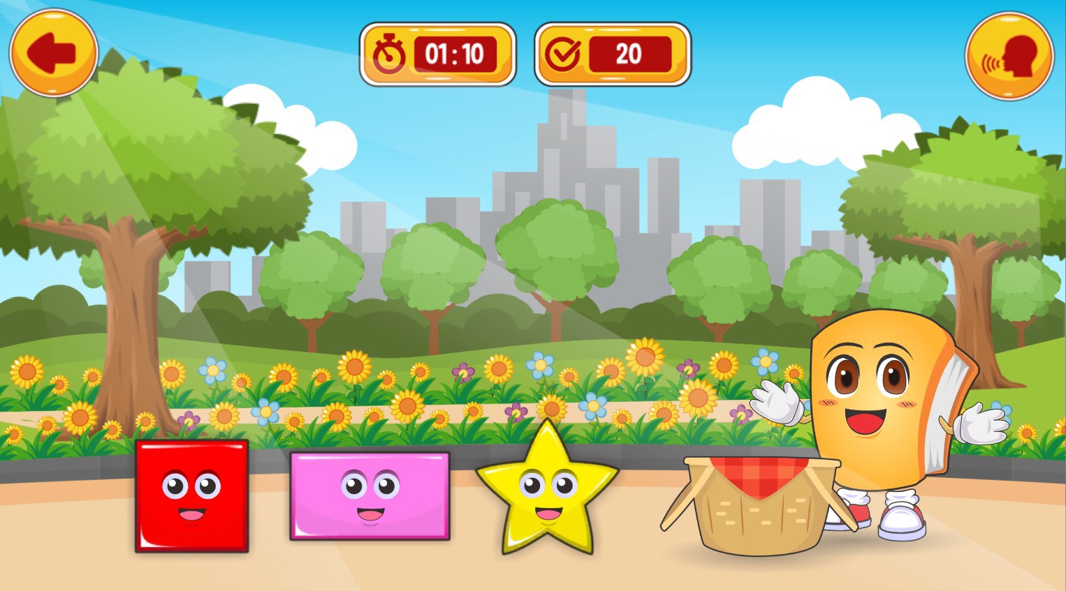 Pada pemainan ini anak-anak akan belajar mengenal berbagai macam bentuk dasar. Konsep pembelajaran pada aplikasi ini dirancang secara interaktif disertai permainan menarik dan suara yang menarik sehingga anak-anak tidak bosan saat bermain.