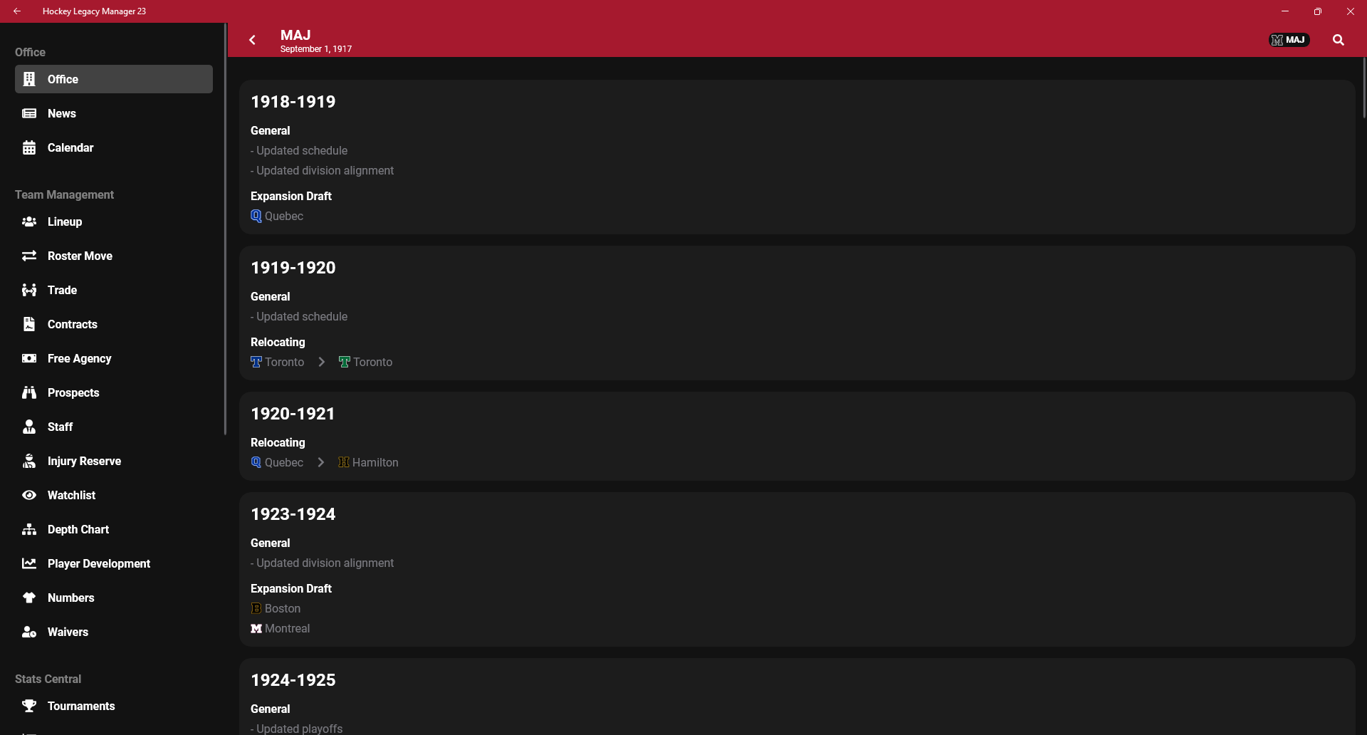 You can even start your career as far as 1917! You have full control over the league's future with the help of expansion drafts!