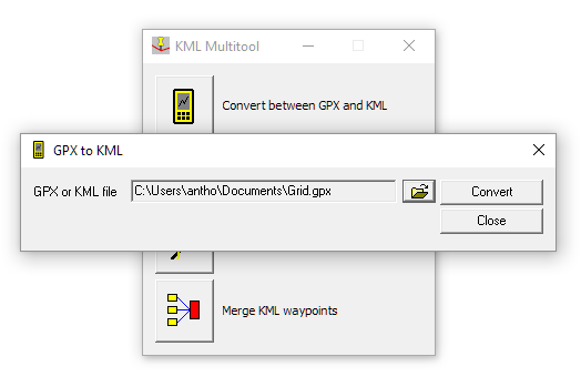 KML Multitool is a handy set of tools to process KML files for use with Google Earth, and GPS apps such as Handy GPS. It lets you: