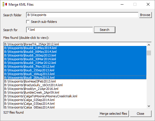 * Merge the waypoints and/or tracklogs from multiple KML files into a single file for easier handling.