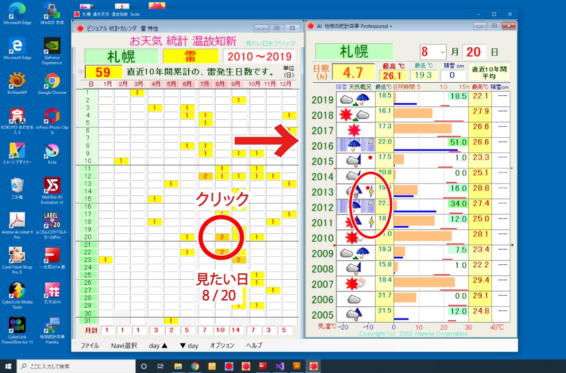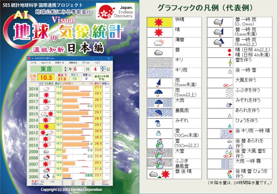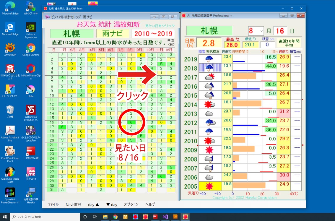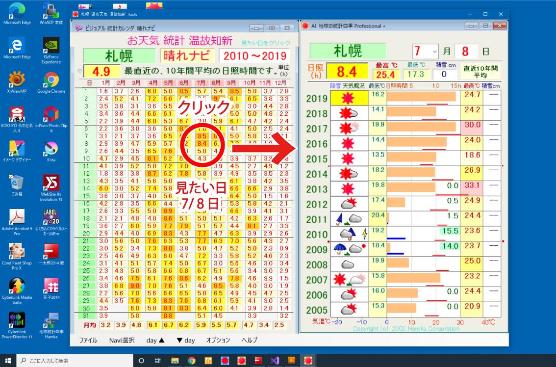Sapporo Past Weather : 「過去の日照時間の長さから、晴れがちかどうかの傾向を見る」という、過去天気を高度に活用するサイエンス情報ツールです。そして単なる過去天気アプリではありません。札幌○月○日の天気を、過去15年分をまとめて表示してくれるアプリは世界初です。2001年のデジタルコンテンツグランプリ「新しい才能」の部で「優秀賞」を受賞し「定番ソフト」に。ソフトウェアのミシュランガイド(欧州ソフトニック社)の評価で、★星9個の格付け。今、UWPユニバーサルアプリに進化して再登場。