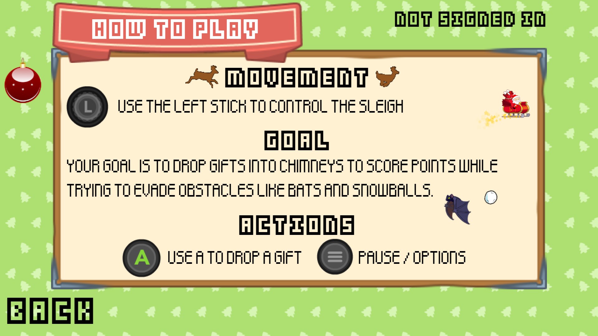 Christmas Delivery is a casual action game for the holidays. Your goal is to deliver gifts to as many families as you can. Drop the packages into chimneys to score points while trying to evade obstacles like bats and snowballs.