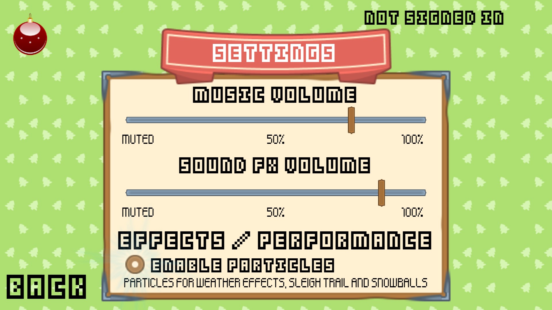 Procedurally generated levels with increasing difficultyGlobal leaderboards to compete with other playersWell known Christmas tunes performed by Kevin MacLeod