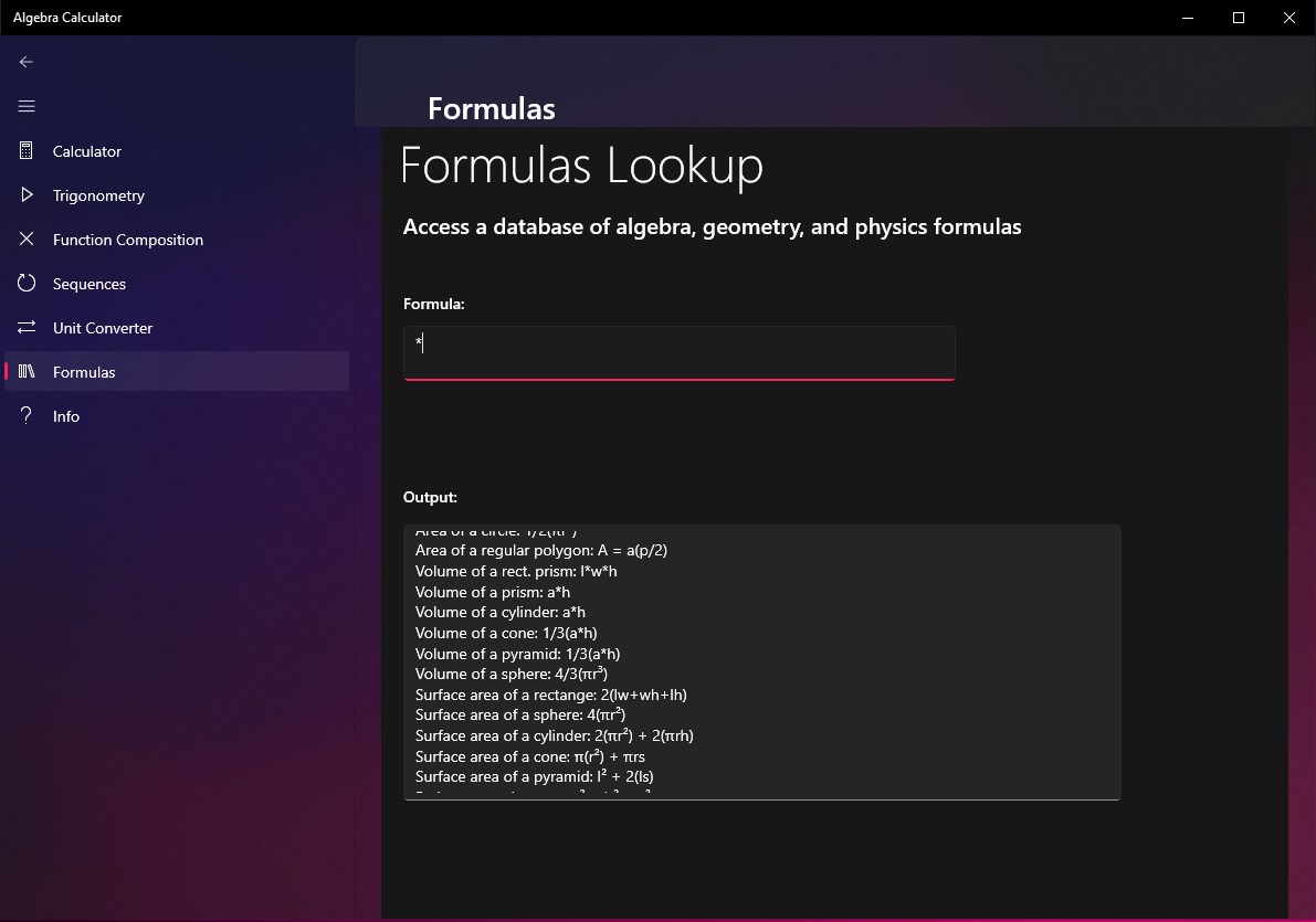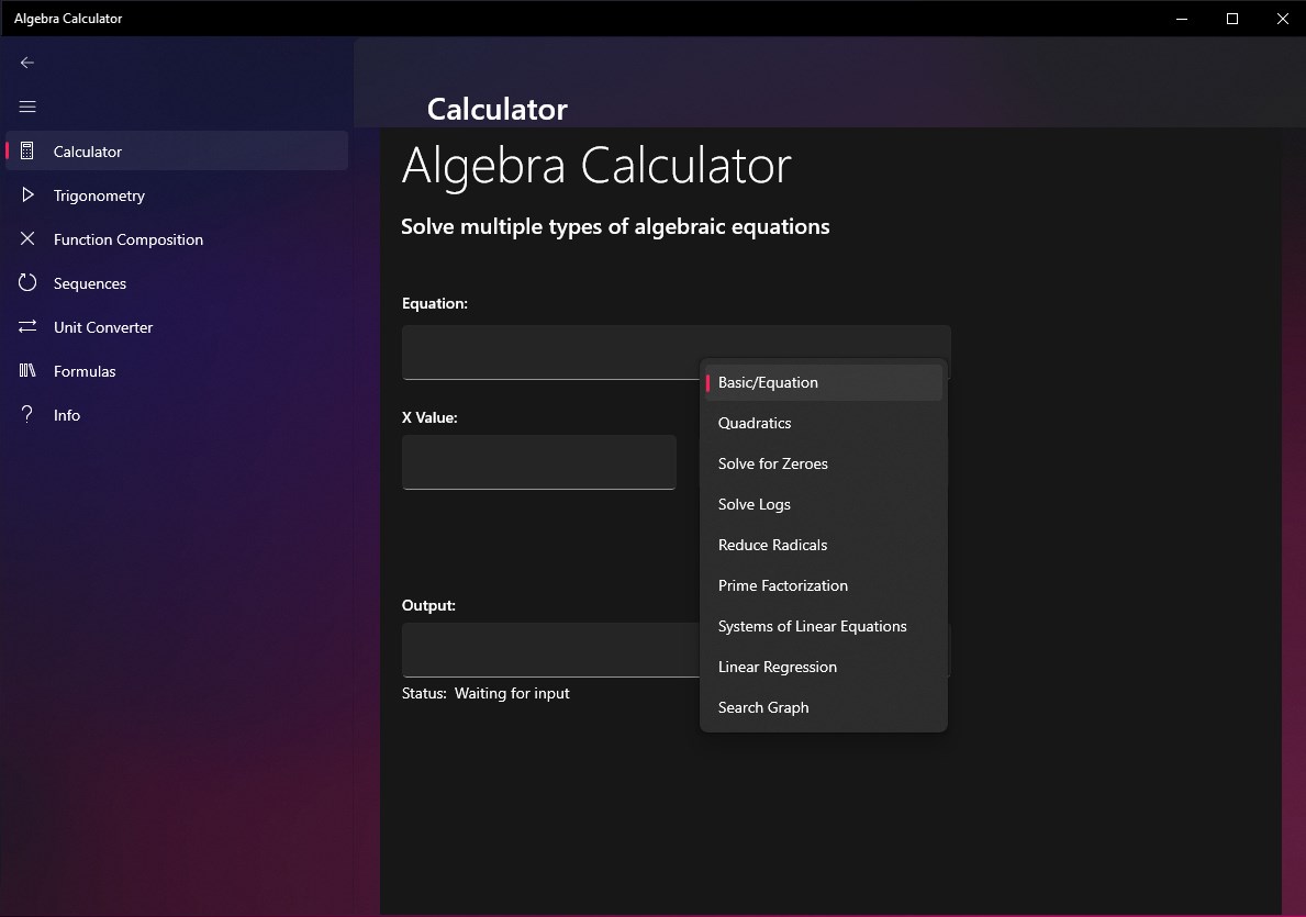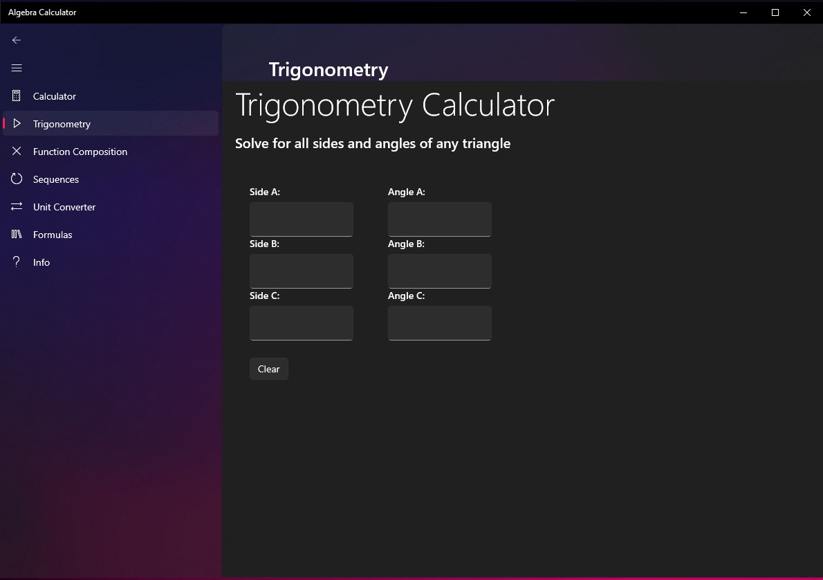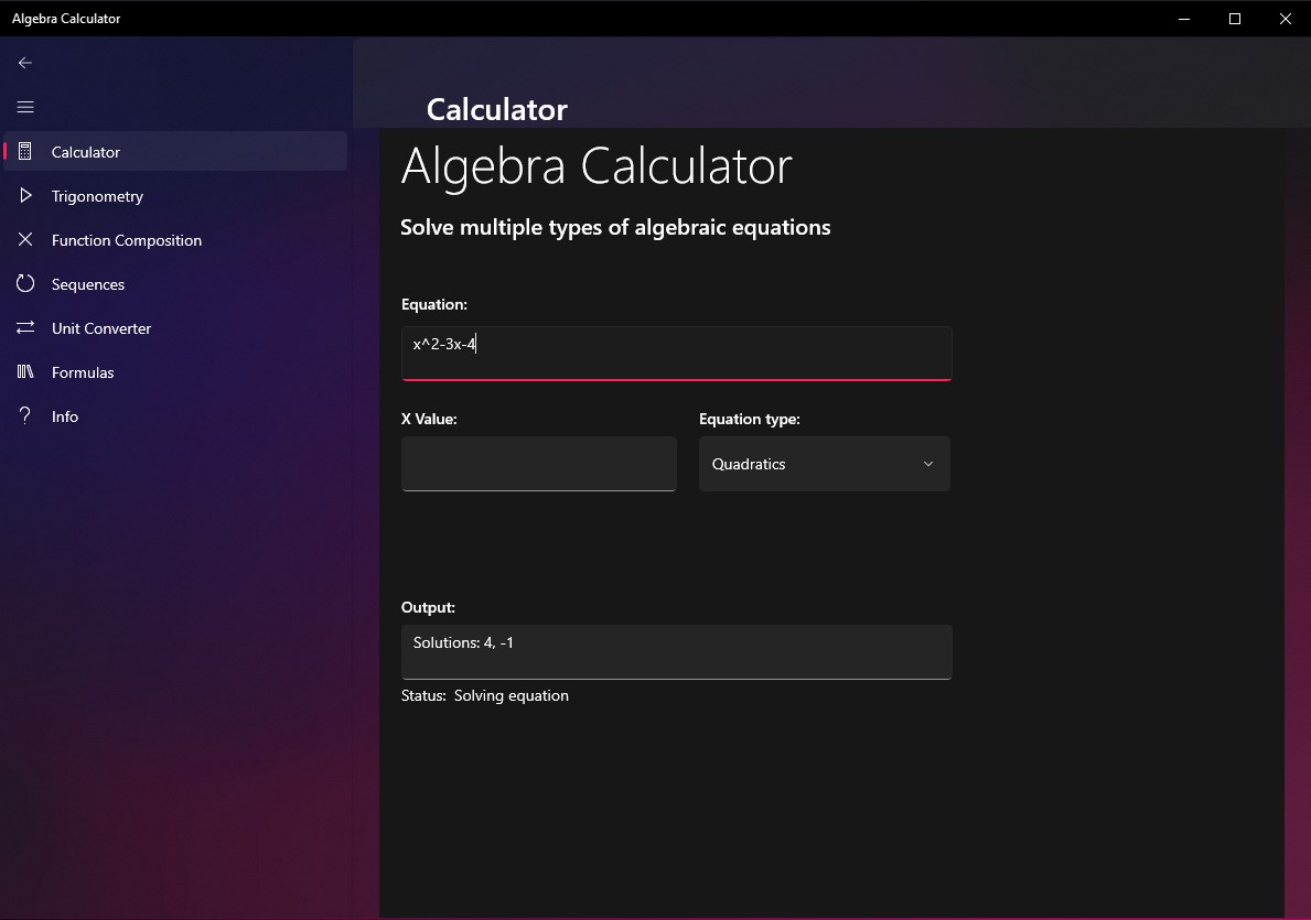 Algebra Calculator replaces standard calculators with algebraic and trigonometric capabilities.