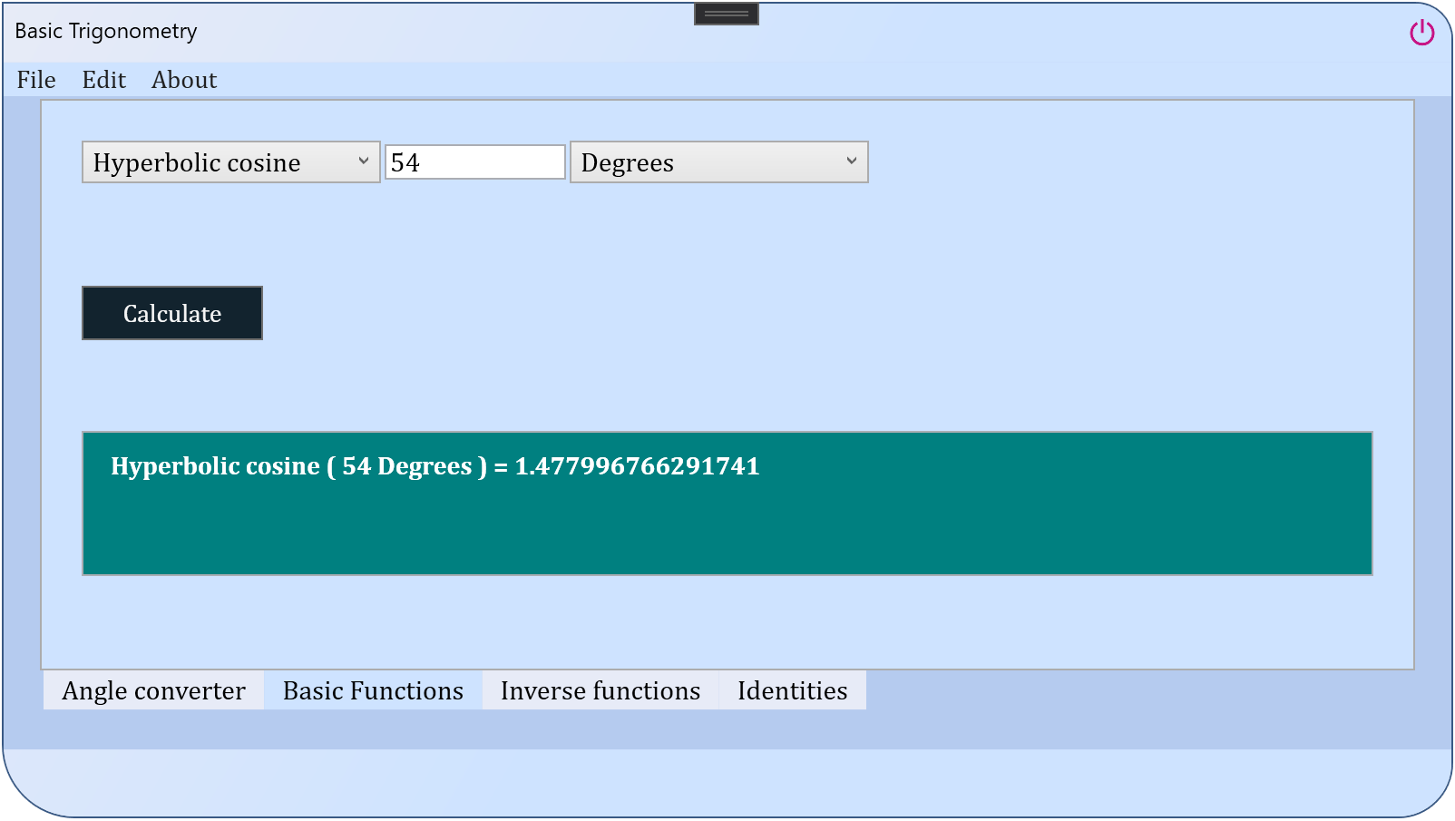 -Basic trigonometric functions such as cosine, sine, hyperbolic cosine, tangent, arctangent and so on