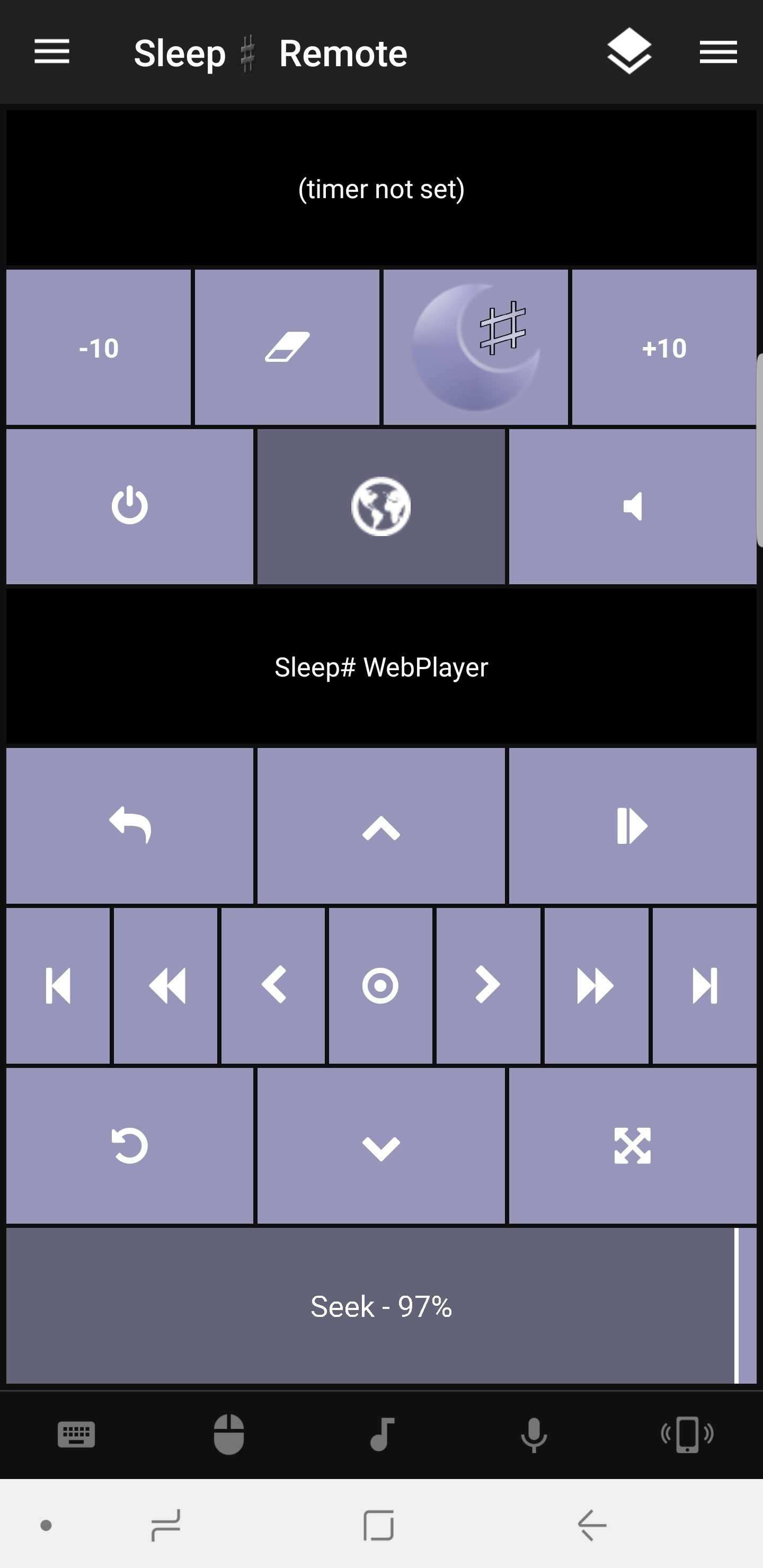 YouTube web player with intelligent sleep - plus control YouTube on your PC using the YouTube app on your phoneWindows Media Player 12 intelligent sleep (without a timer!)VLC intelligent sleep (without a timer!)Google Play Movies & TV intelligent sleep (without a timer!)Detects the end of fullscreen video and sends your computer to sleep if it has been idle for a predefined amount of timeFades screen and sound gracefully before sleepBackup countdown timer for the occasions when the media player is not supportedUnified Remote custom remote provided to set/update/cancel countdown timer and trigger faderInstant lock mode - play a full screen video on a computer safe in the knowledge that the machine will be locked or you will be logged out when the video ends/is closedSave electricity and reduce noise and light in a bedroom enviroment