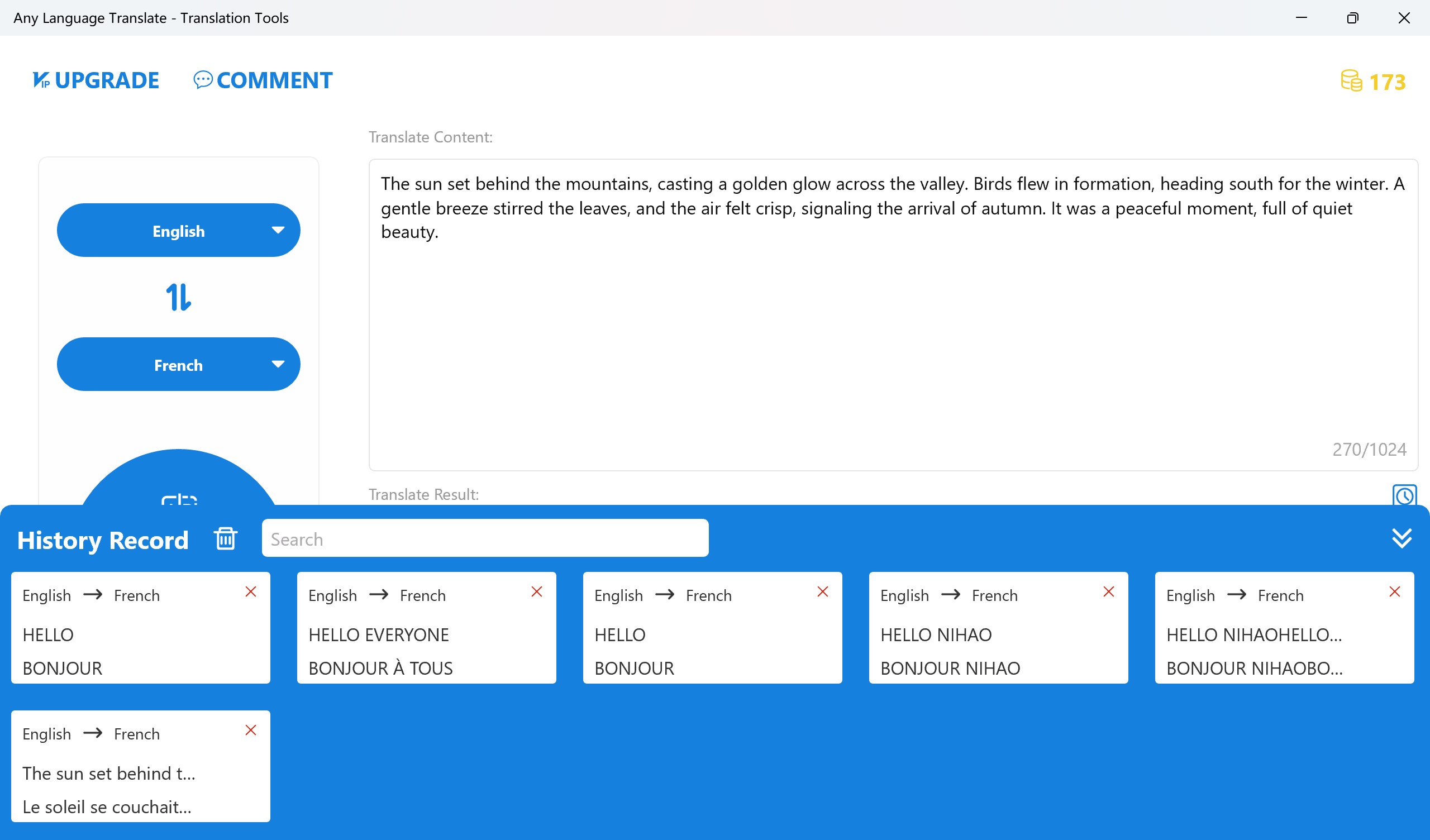 4. Convenient History Tracking: Access your translation history for up to 7 days, enabling easy retrieval and review of past translations. The built-in search functionality further enhances your experience, allowing you to quickly find previously translated content.
