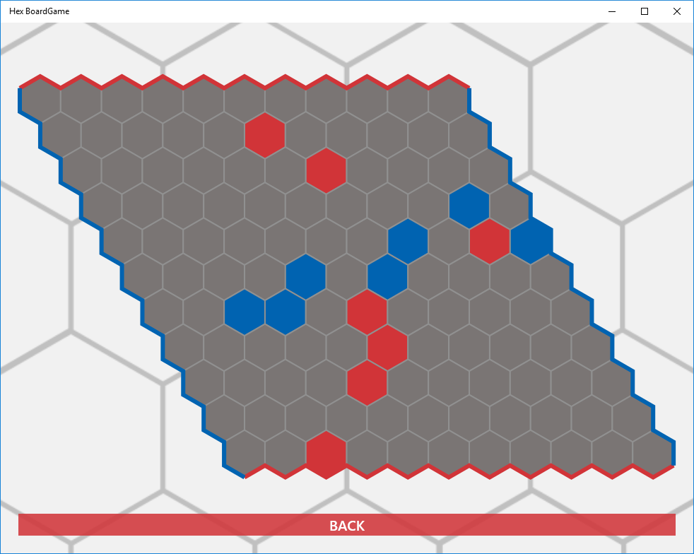 Two players take turns placing their color, red or blue, on empty cells aiming to connect opposite sides of the board.