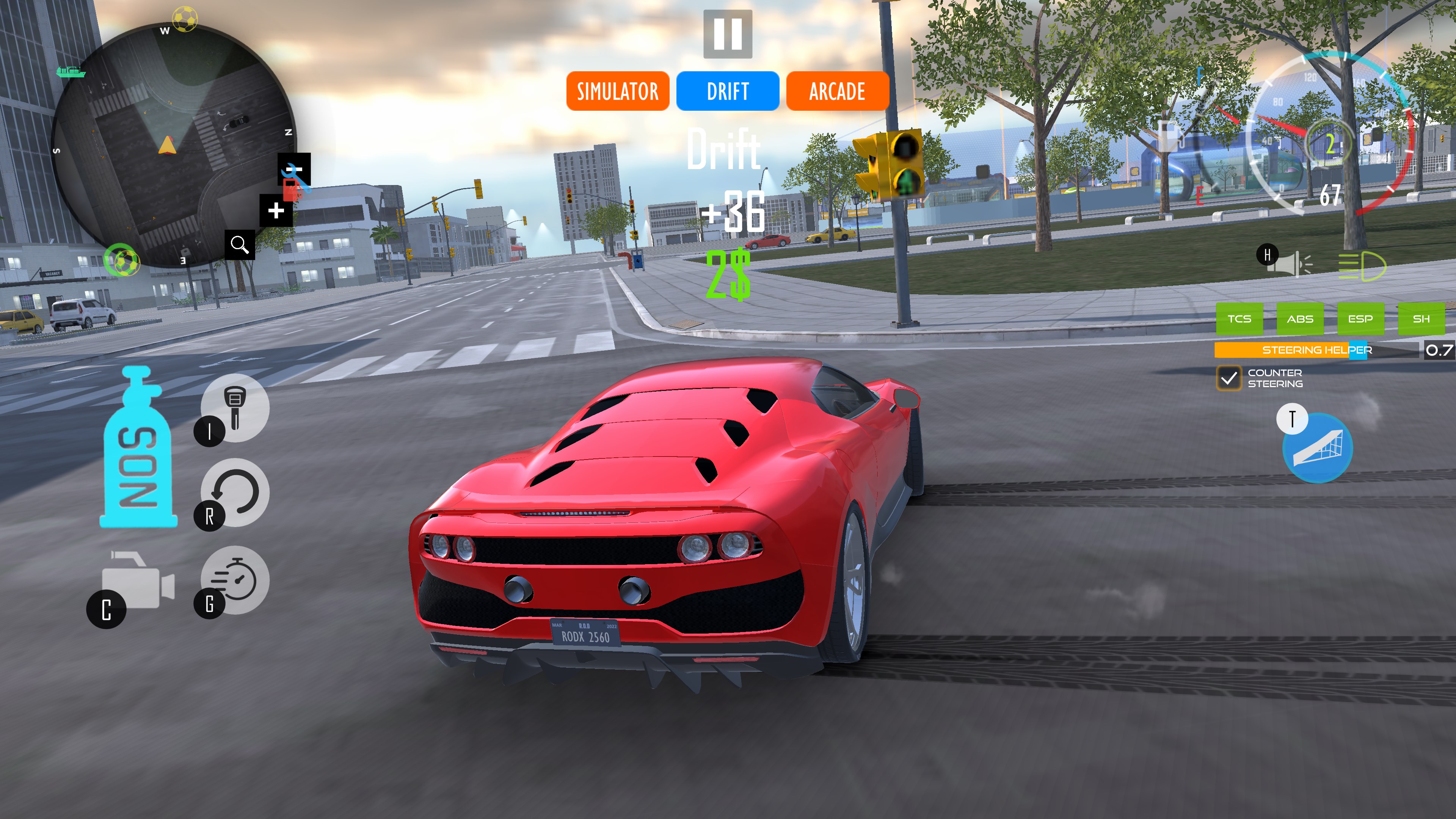 Start the game by choosing one of the drift car driving, arcade and simulation driving modes.