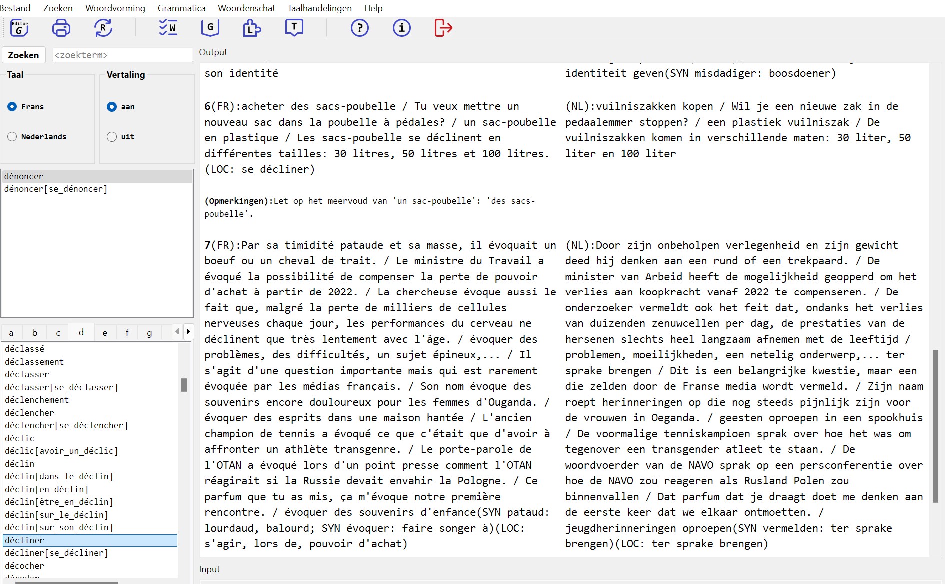 - a database of about 30 000 French chunks / phrases with Dutch translation