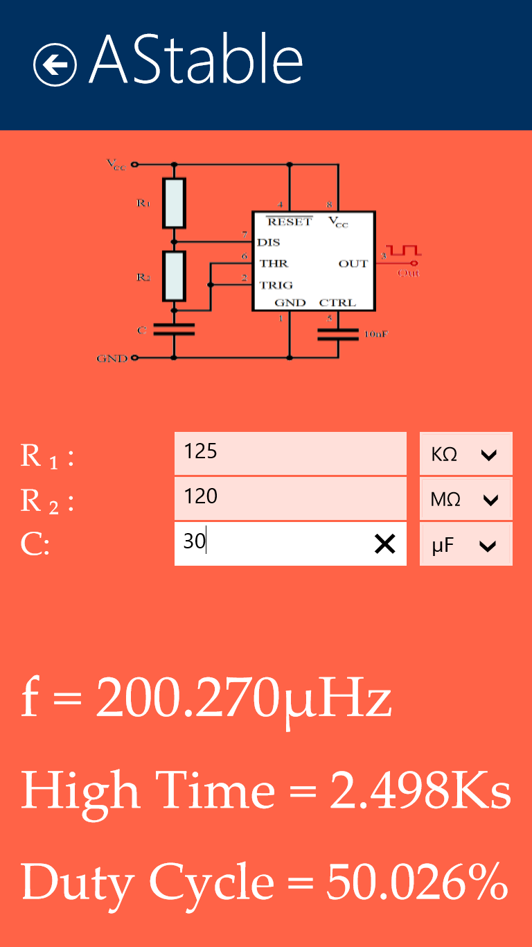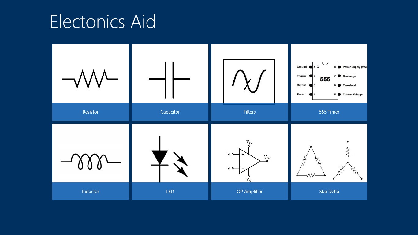 Resistor: Color code, SMD code, Series & Parallel Value Calculator.Inductor: Color code , Series & Parallel Value Calculator & Inductor Design Tool.Capacitor: Capacitor code & Series , Parallel Value Calculator & CapacitorDesign Tool.LED Resistor Calculator.Filters "RC, RL & LC" Frequency Calculator.Op Amplifier "Non-Inverting, Inverting & Differential" Tool.555 Timer "AStable & MonoStable " Tool.Star Delta Calculator.