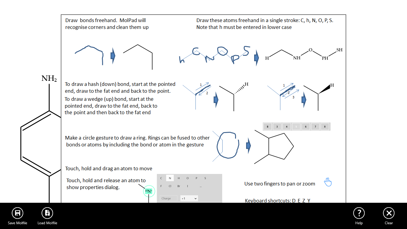 Intuitive to useDesigned specifically for tabletsChemically intelligentRecognises bonds and basic atomic symbolsGesture support for drawing ringsSupports industry-standard Molfile format