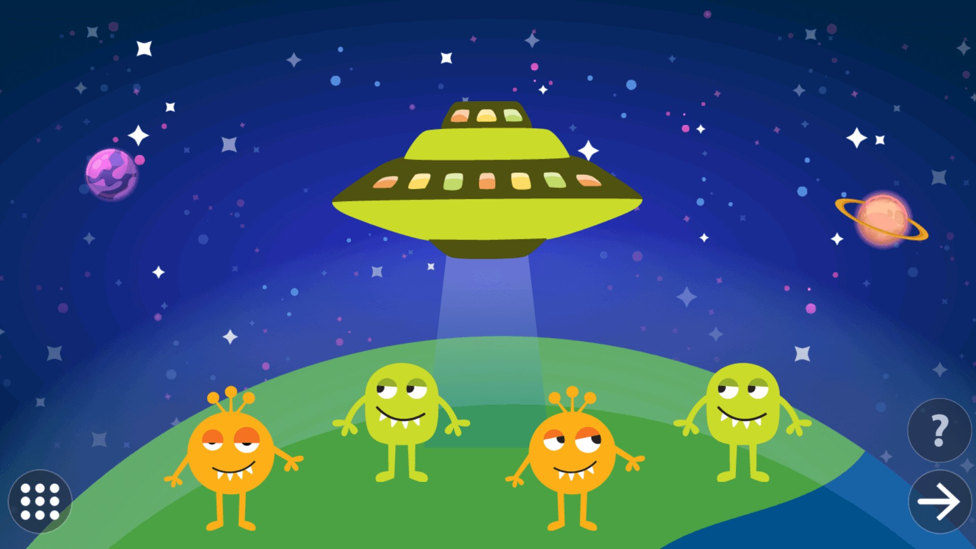 • Learning Shapes and colors for toddlers has been presented in the form of fun learning activities like Dragging the monster for space jump, feeding hungry frog, Balloon pop quiz, Odd one out, Honey bee etc.