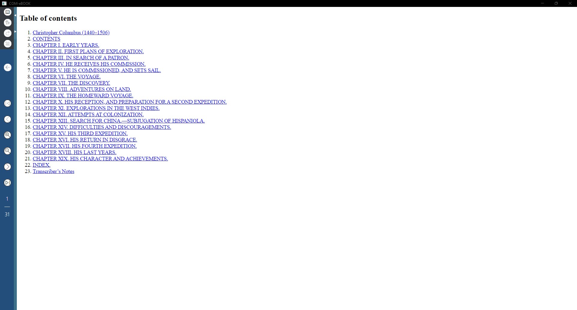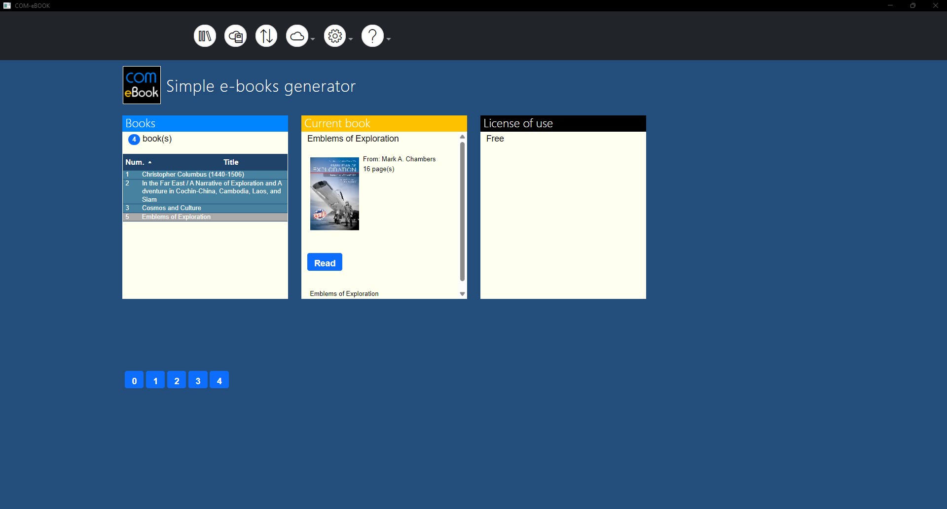 COM-eBOOK is a simple generator of ePub ebooks and a free ebook reader in ePub or CBZ format. The commercial ePub files containing encrypted text, to protect the copyrights, are not managed by the application).