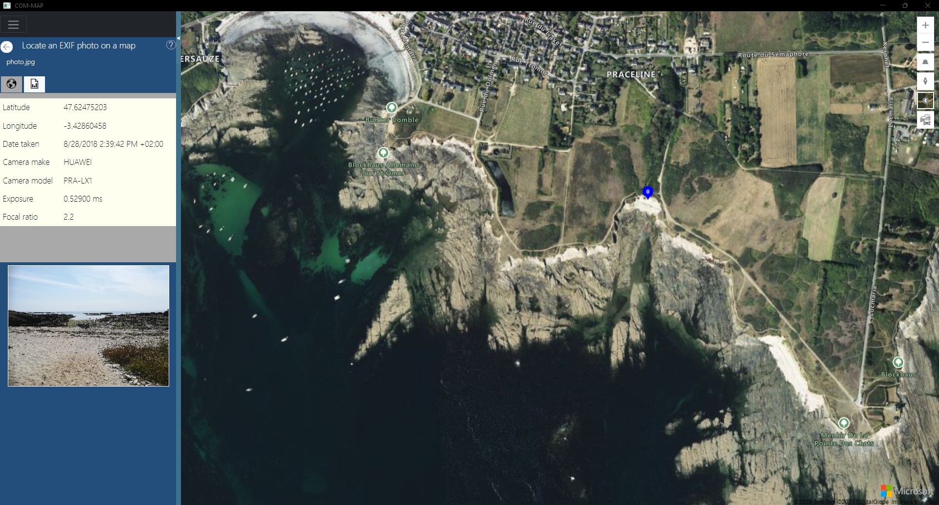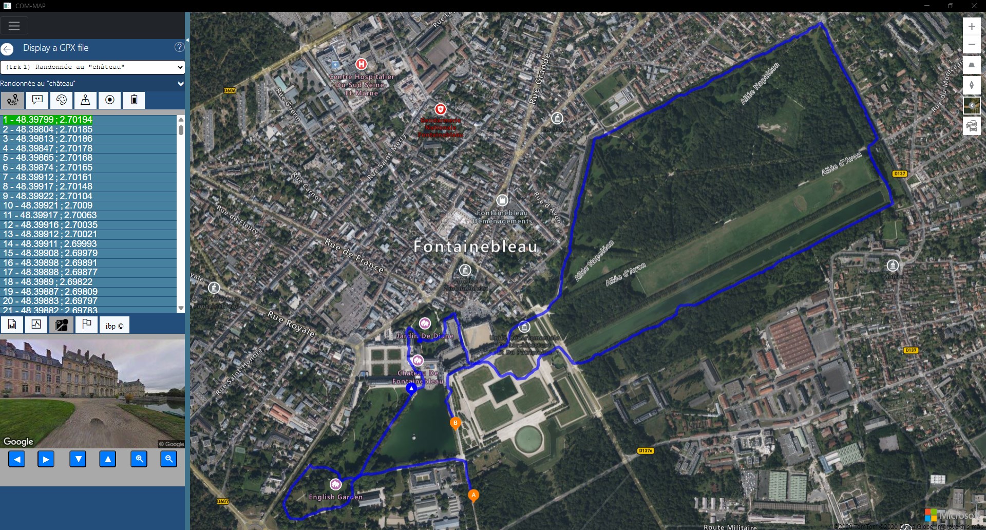 Optimize the itinerariesVisualize the itineraries on "Azure Maps ©" mapsSearch POI around an address (via "Google ©", "Azure Maps ©" or "OpenStreetMap ©")Search the traffic problems, in real time, on your itinerariesManagement of vehicles, their consumption, and their carbon footprintsExport the itineraries in text, GPX, KML or WAV filesDisplay an itinerary from a GPX or KML fileDisplay points of interest from a CSV file (Garmin © or Navman ©)Localization of JPEG image having EXIF GPS dataChoice between metric system and imperial systemConverting file formats between GPX and KMLStreet View © imagesExploration of the countries providing information (capital, number of inhabitants, surface, ...)Find POIs (Azure Maps ©) along a calculated routeSearch Wikipedia © articles, Flickr © images and Tripadvisor © sites near an addressImport/export GPX and KML files from/to OneDrive ©Locating IP on a mapHiking, cycling and wheelchair route calculationGeotag a photo (EXIF GPS)UNESCO © World Heritage Sites