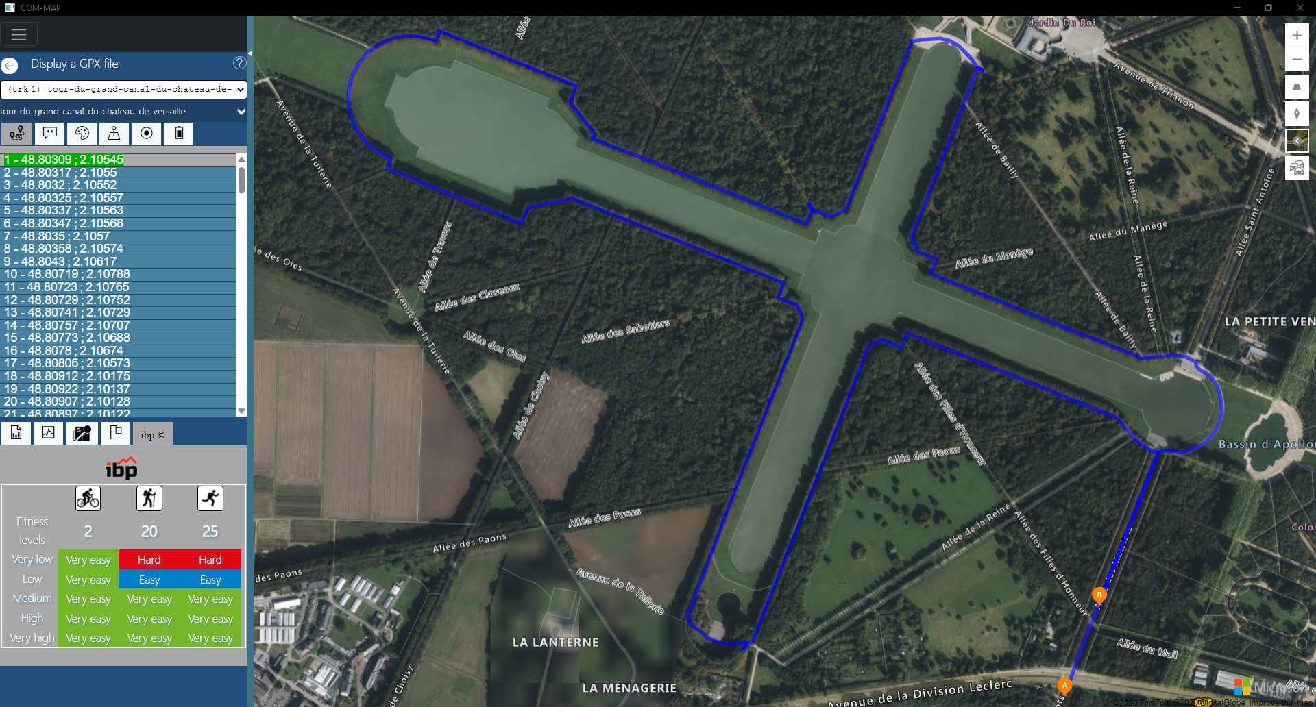 The COM-MAP application allows to optimize a simple itinerary with several stages (trips by car or on foot).