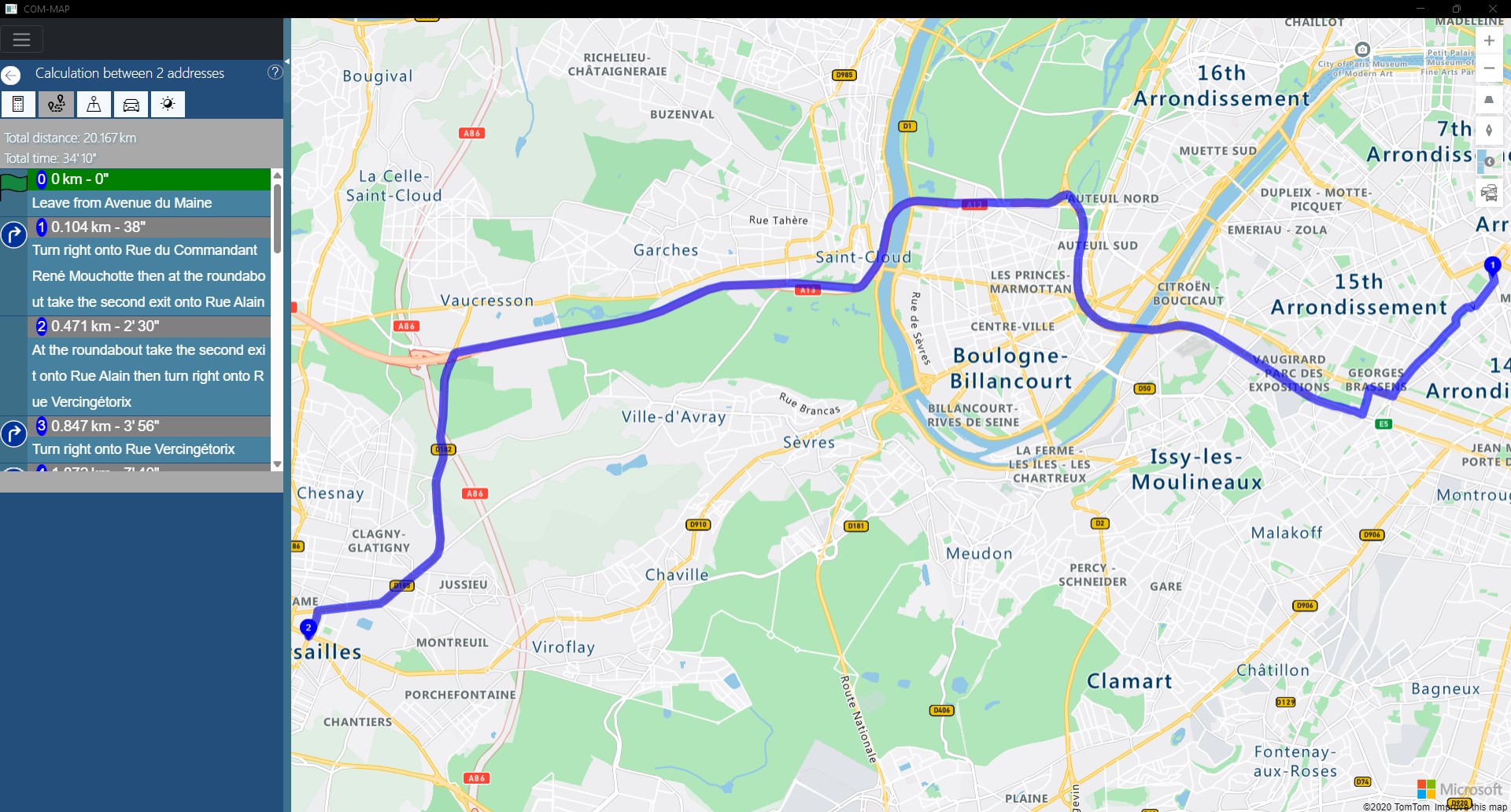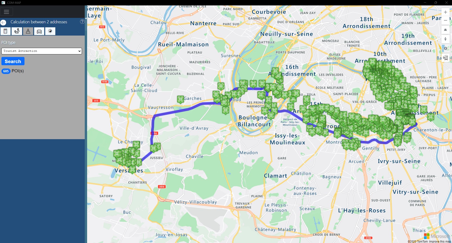 Moreover COM-MAP has other functionalities (points of interests, state of the traffic, and so on) which will help you in decision making.