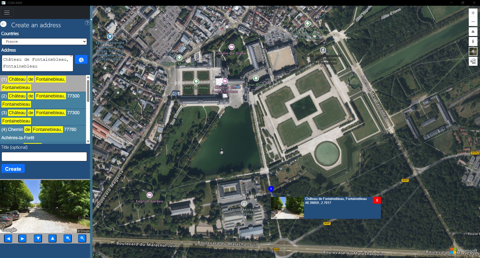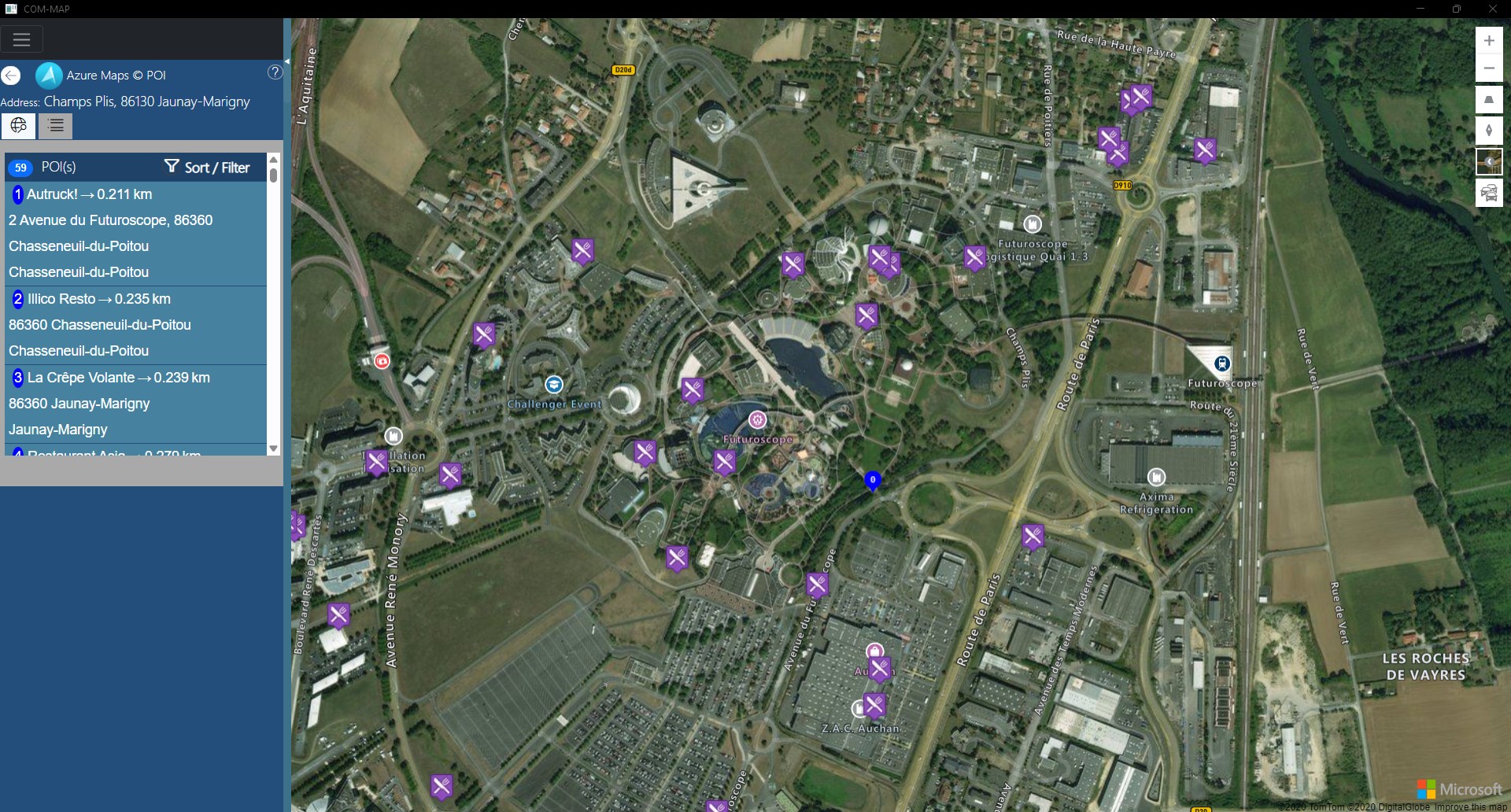 COM-MAP uses the services of cartography of "Azure Maps ©" and "Microsoft Corporation ©".