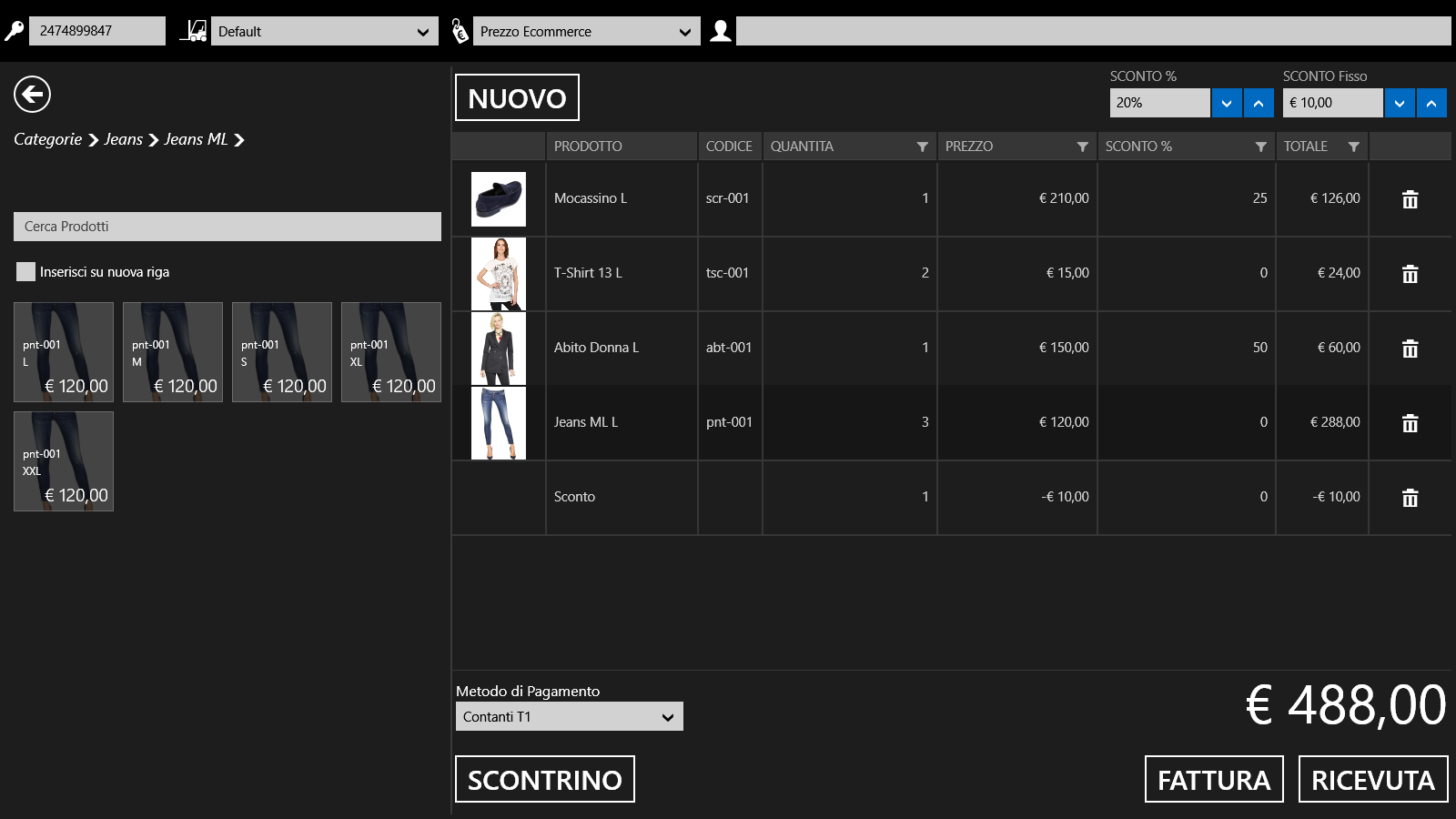 MainApps Pos è un applicazione collegata al gestionale MainApps che può essere usata come un registratore di cassa. Ti permette di consultare tutti i dati inseriti nel gestionale per avere l'elenco dei prodotti, l'anagrafica dei clienti e le disponibilità di magazzino. Una volta completato l'acquisto viene lanciata la stampa del documento fiscale ed aggiornata la giacenza di magazzino.