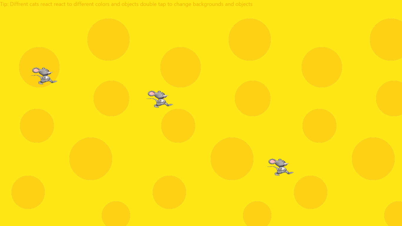 4 mini games aimed for cats. The games display random moving objects on a flat background to stimulate cat's hunting instinct and brain.