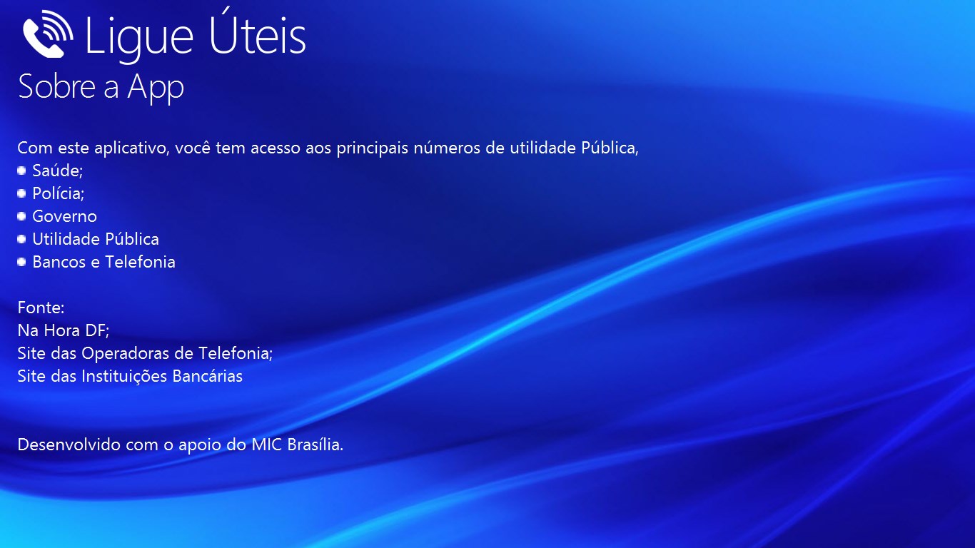 Por este motivo disponibilizamos este aplicativo leve e simples, com os principais números de utilidade pública.