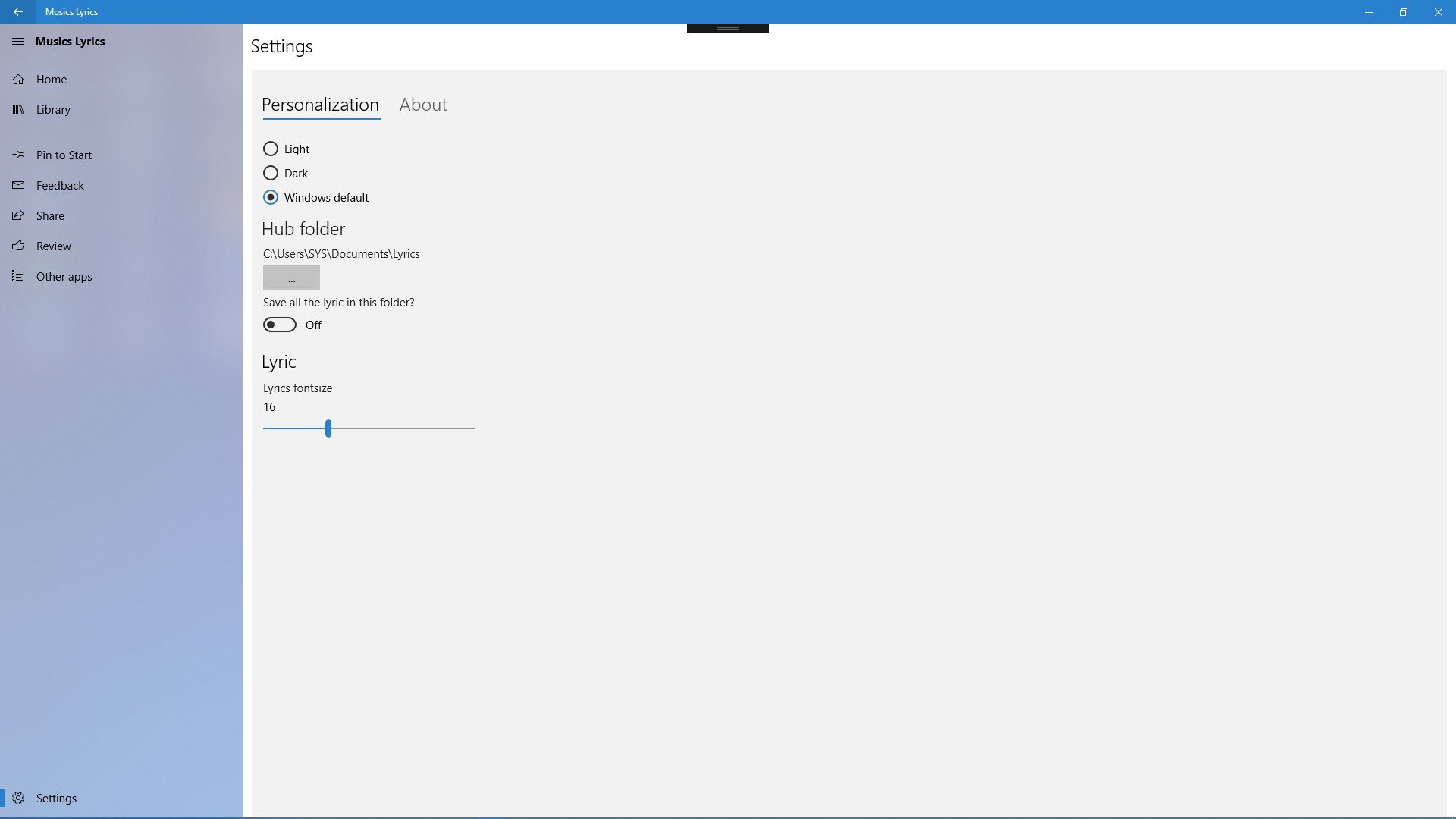 -set lyric font in Settings