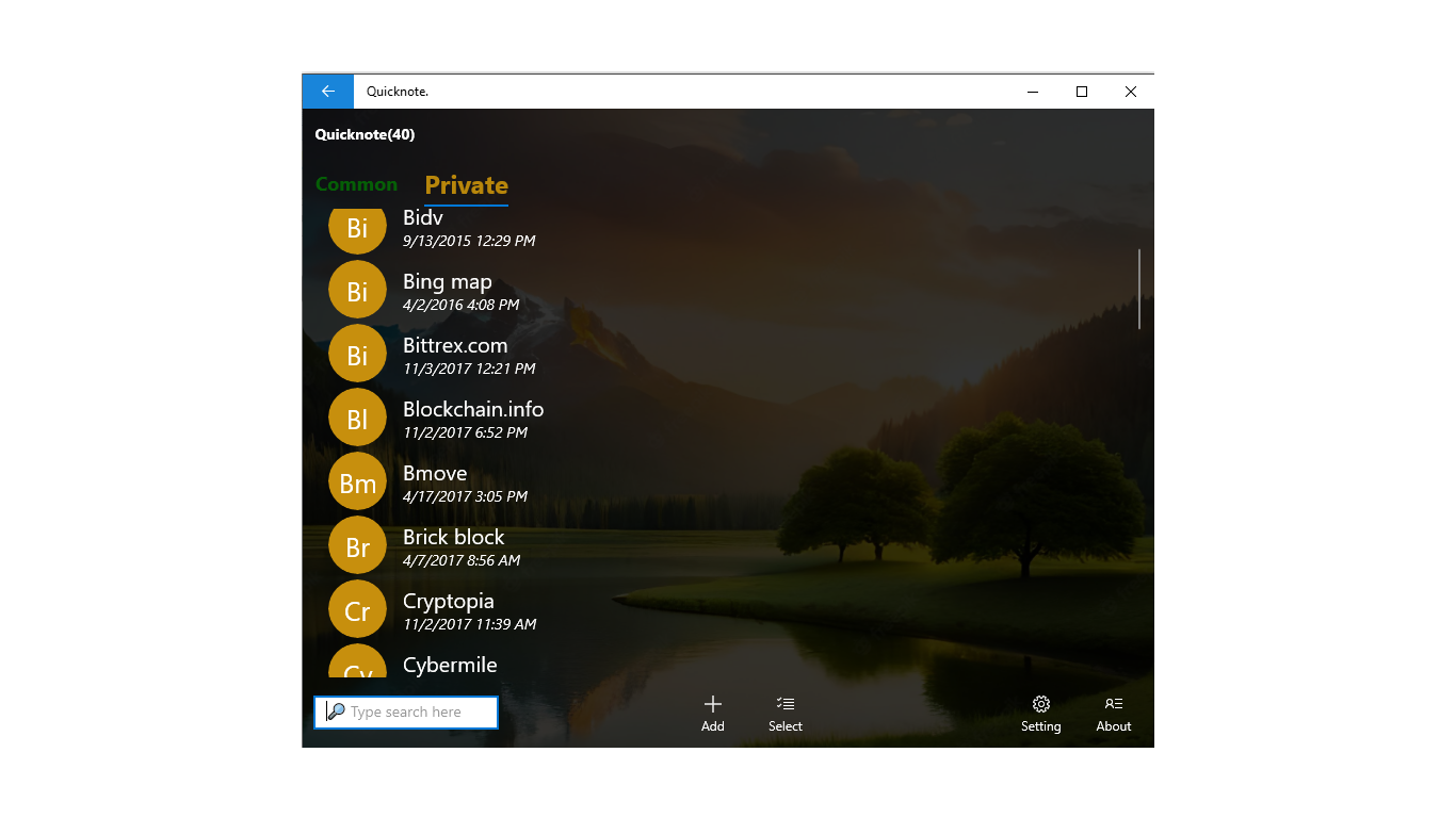 Quicknote is a small program to store personal information,notes. It is simple and very easy to use