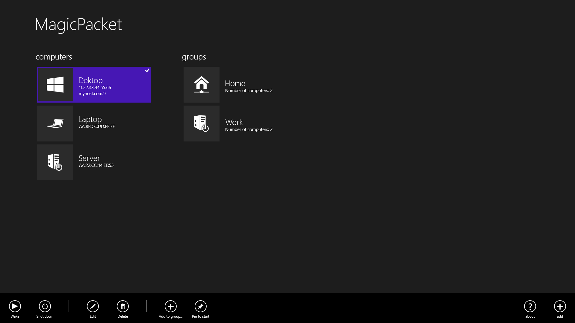MagicPacket is a free app to start computers remotely by Wake On LAN or Wake On WAN.