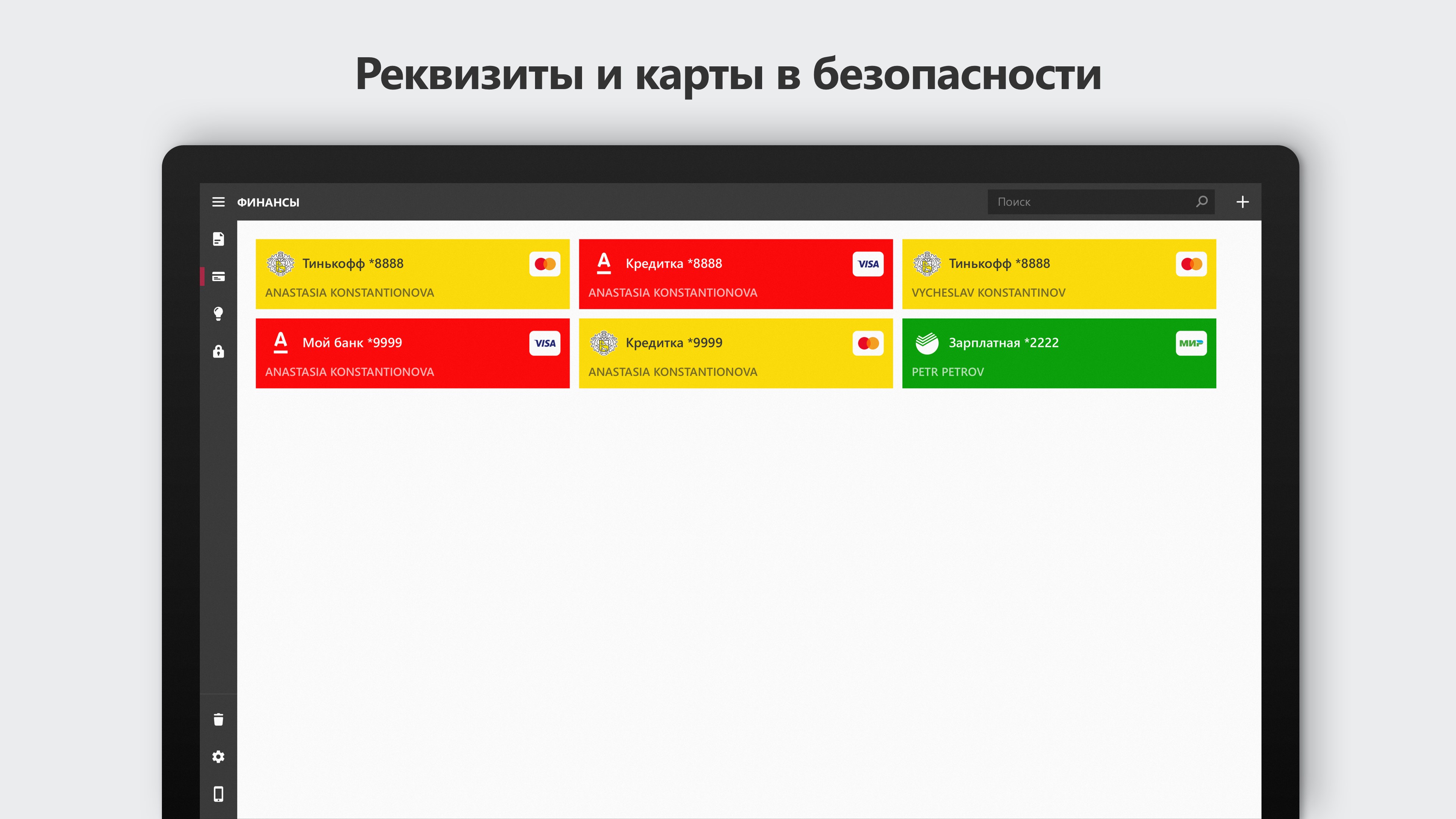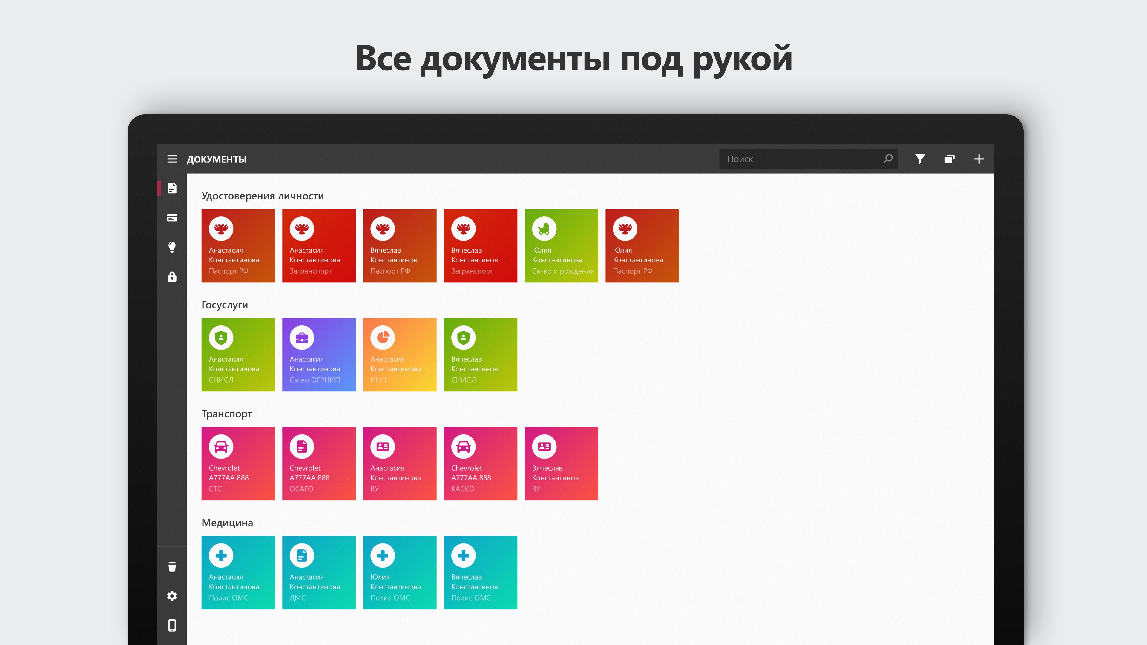 3) Tags instead of folders! Enjoy easy categorisation and automatic sorting of added documents by tag. Use your own tags when creating a document. Navigate through your folders with ease as all of them are now stored conveniently in the newly added My Tags section. The same goes for passwords and bank cards – you can find all of them in the Notes section
