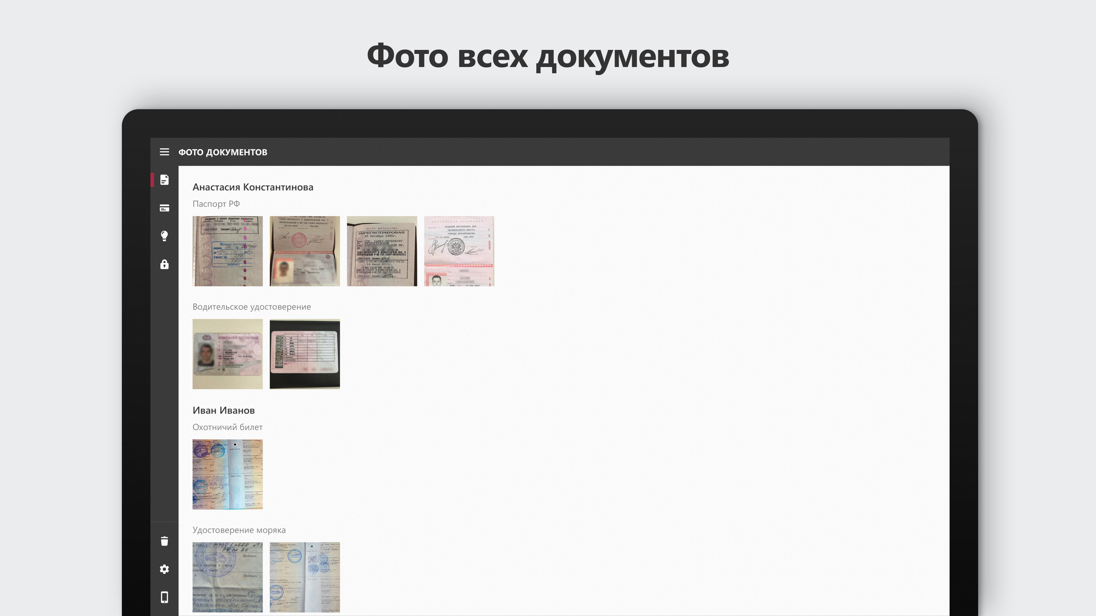 Each document has its own template with hints. You can store scanned copies or photocopies of your documents and access them using any device. It all comes with convenient sorting, auto-tagging and a smart document search both through the app or any of its sections.
