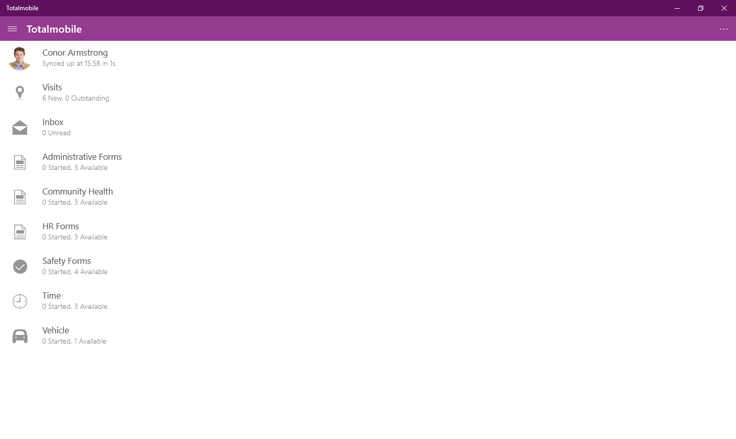 visits, forms, bulletins, homescreen, map my day