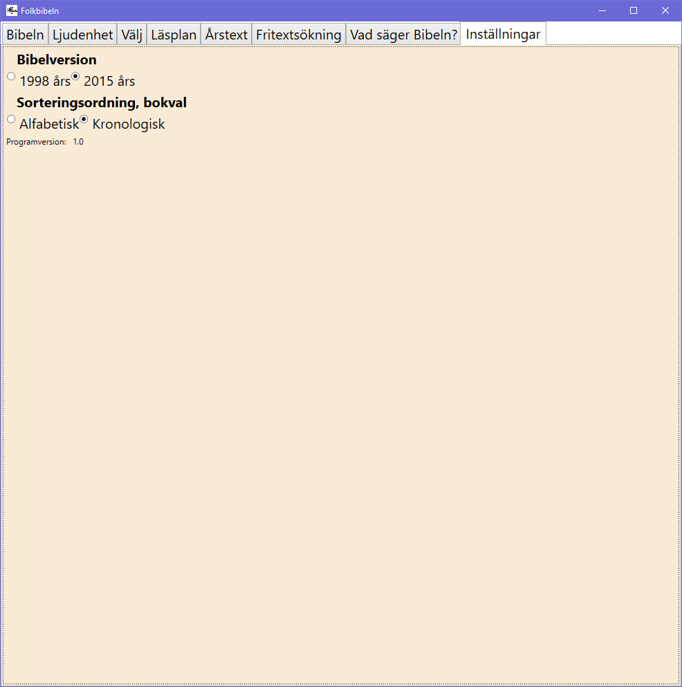 Lagt till möjlighet att i inställningarna välja alfabetisk eller kronologisk sortering vid val av bok.