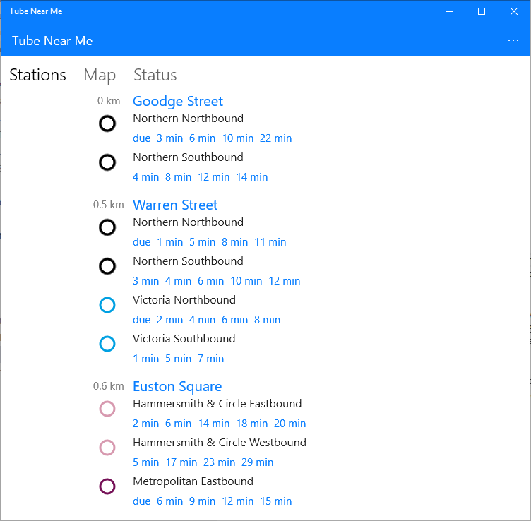 Quickly check when London Underground tubes are leaving near you.