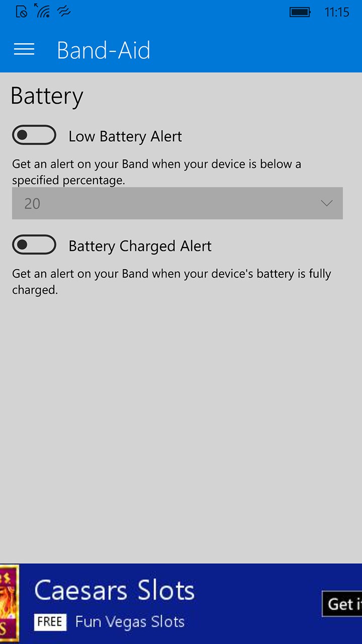 - Battery - view your phones battery percentage straight from your band and receive alerts when your battery is low.