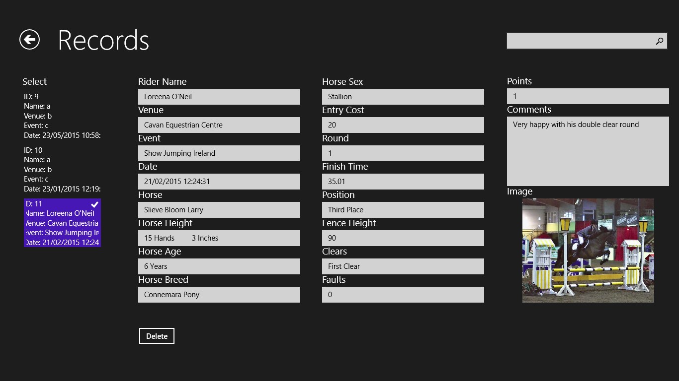 This application is for keeping records of show jumping events.
