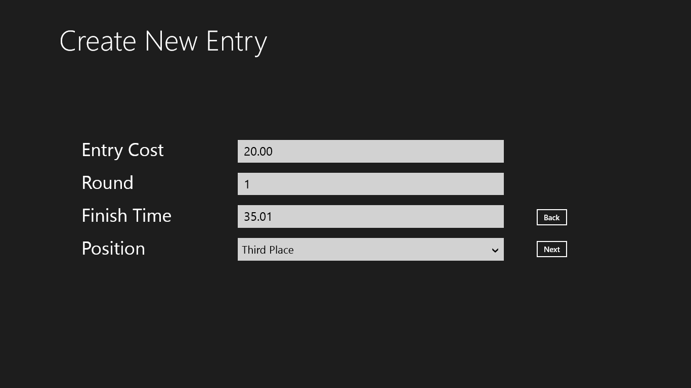 Create New Entry - add details for new round and saveRecords List - search records on list or use search bar