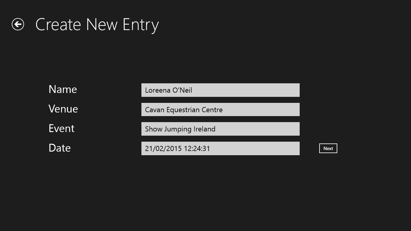 Details of Rider, Horse, Event, Venue, Course, Comments and Image are stored on device.